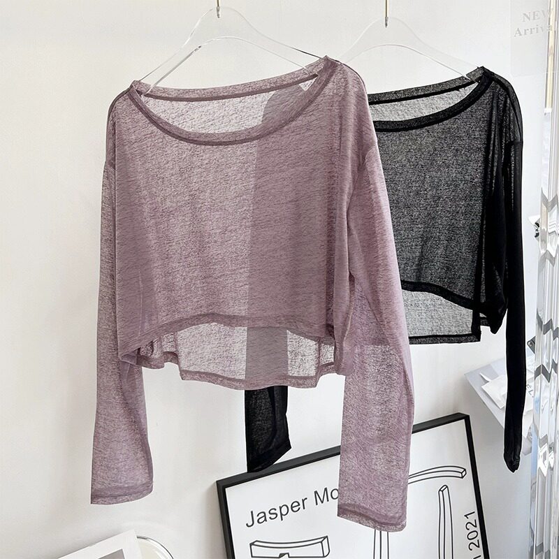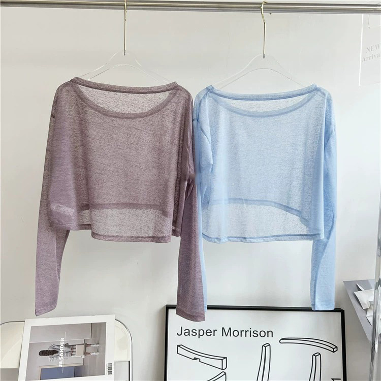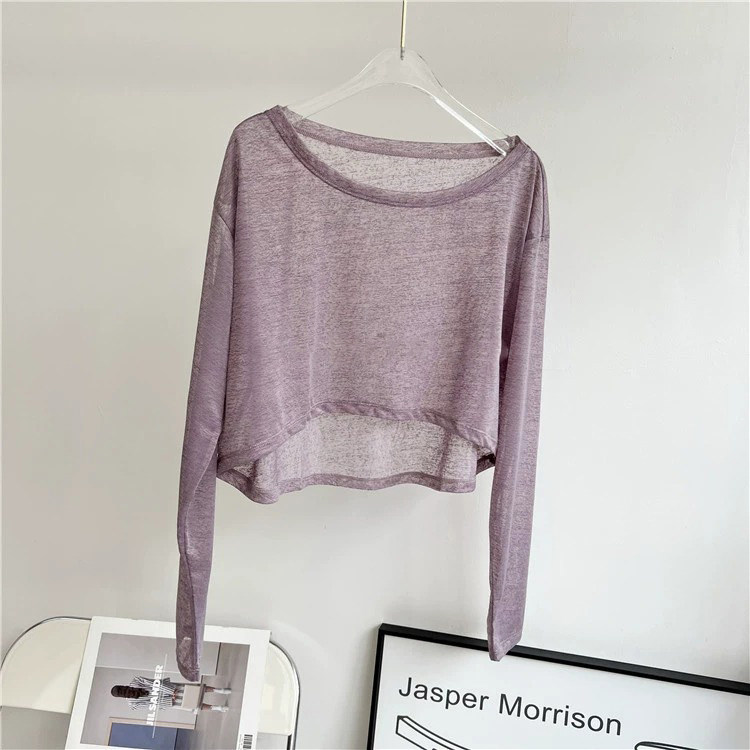 瑜伽服女短款透气宽松显瘦罩衫小众普拉提跑步健身长袖上衣夏