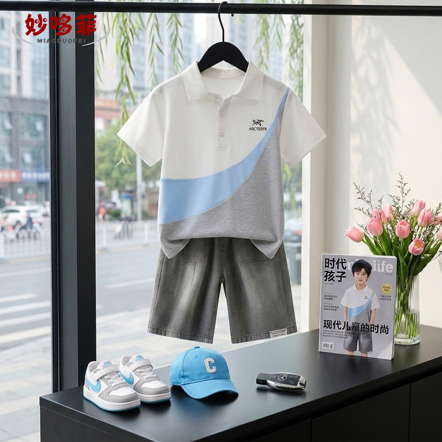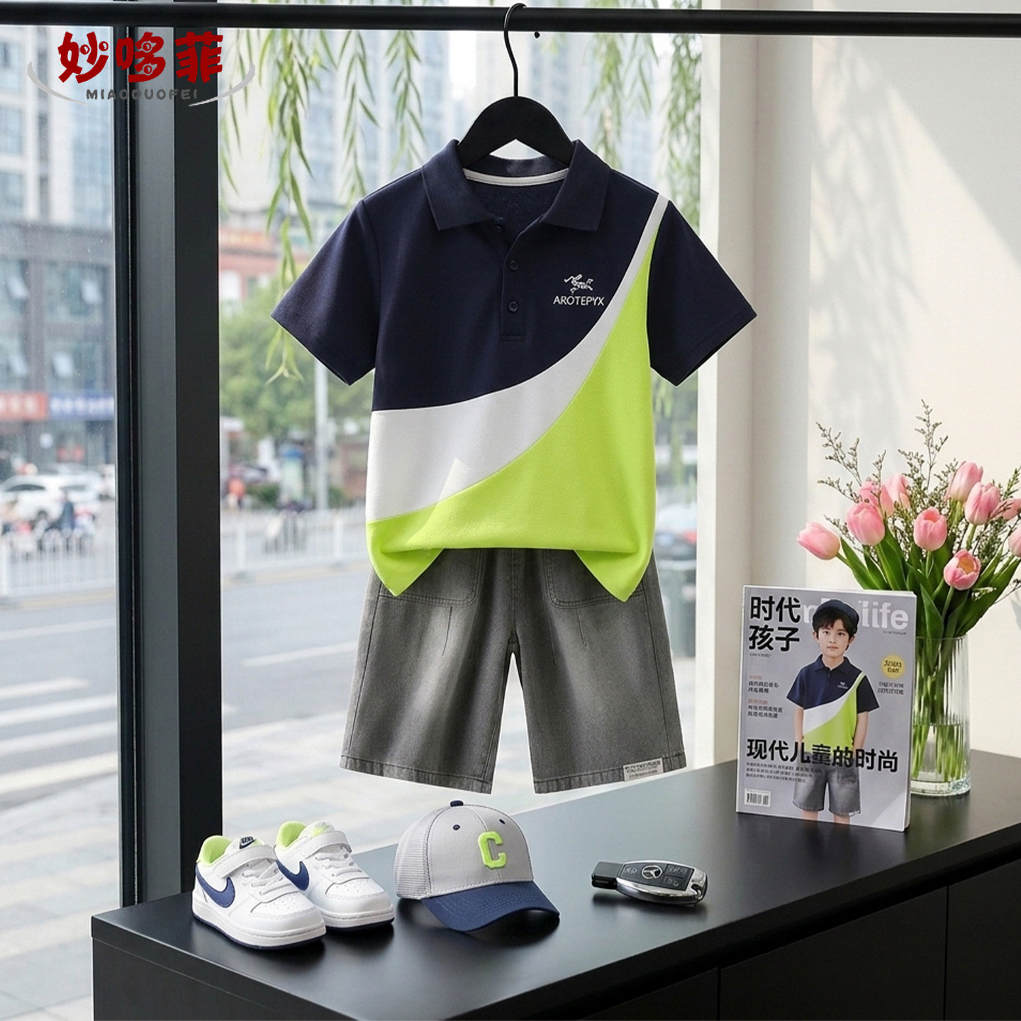 男童短袖t恤2026新款儿童运动Polo衫男孩宽松落肩袖大童韩版上衣