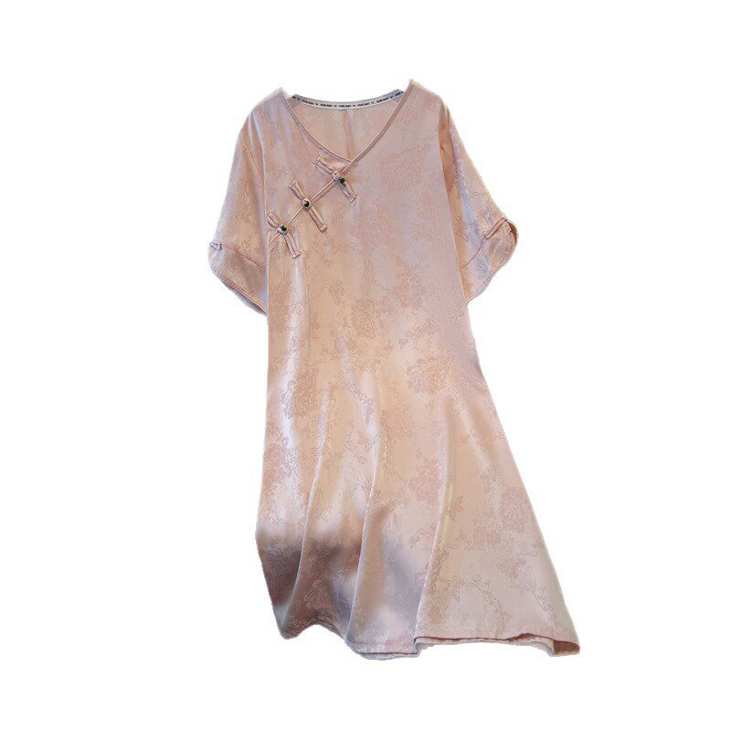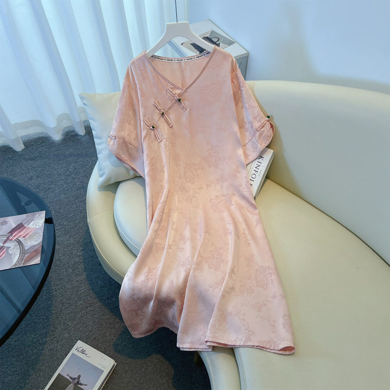连衣裙女大码胖mm梨型身材国风200斤显瘦提花新中式改良旗袍裙夏