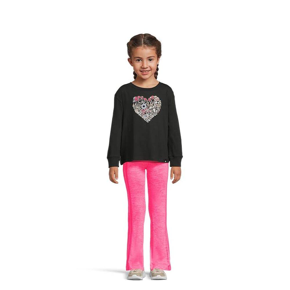 1h可退 香港直邮adidas 阿迪达斯 女童 印花T恤喇叭型裤子套装(学