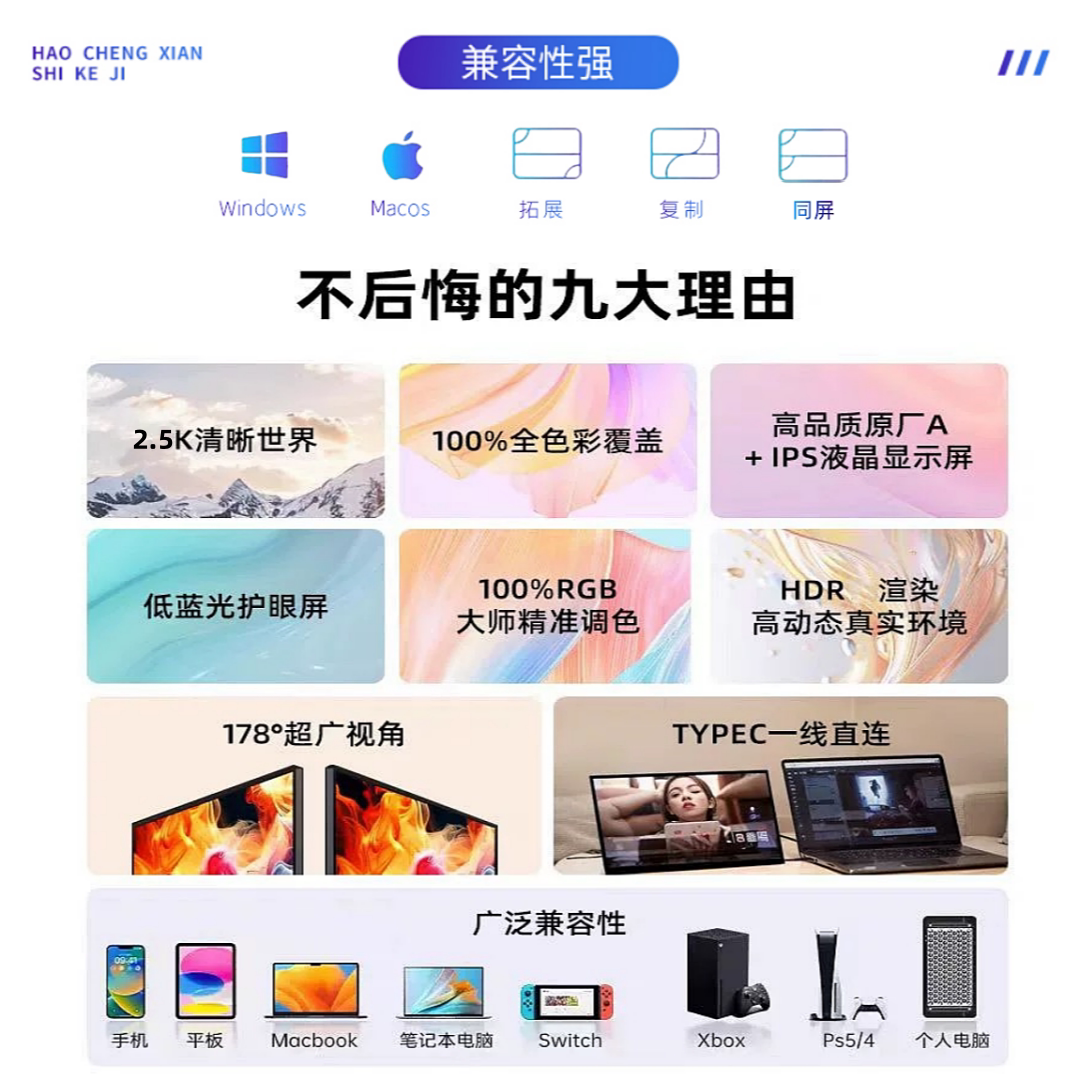 27寸24.5寸23.8寸21.5寸便携显示器2.5K4K外接扩展触摸屏/
