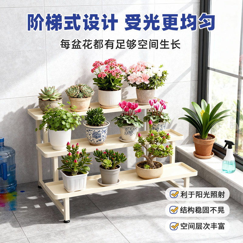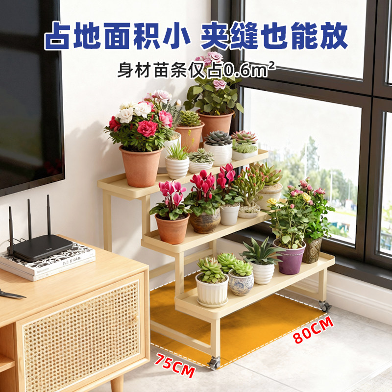 带轮可移动阳台花架子客厅落地式铁艺多层植物摆放架阶梯置物架子