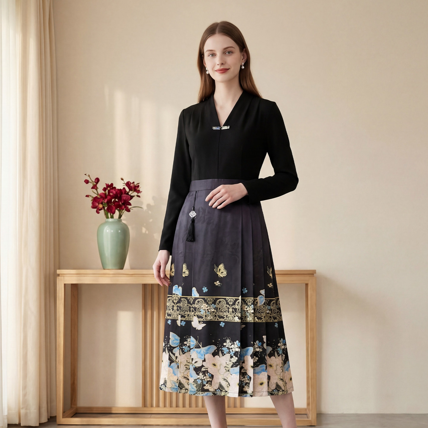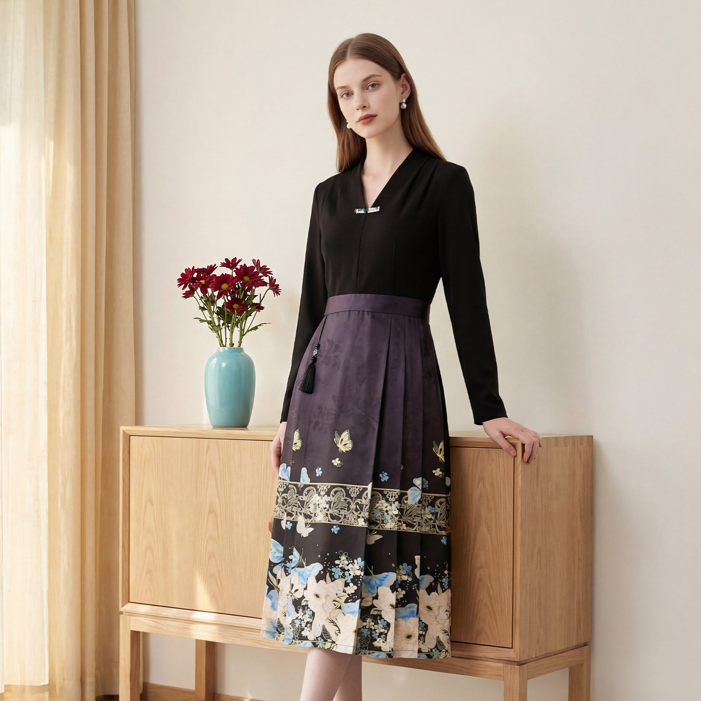 311线报网描述:新中式国风 时尚拼接设计 收腰显瘦版型