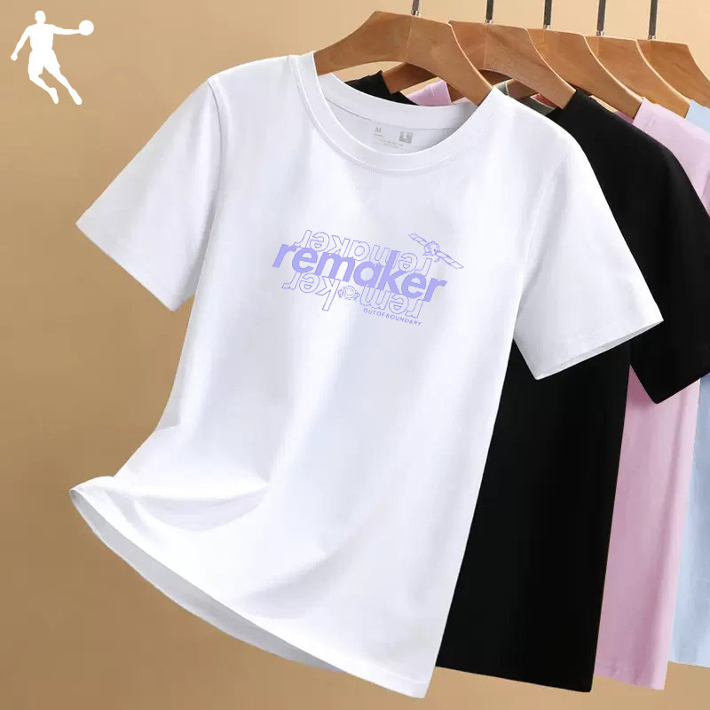 乔丹短袖T恤女夏季新款官方粉色体恤修身正肩半袖圆领运动上衣女