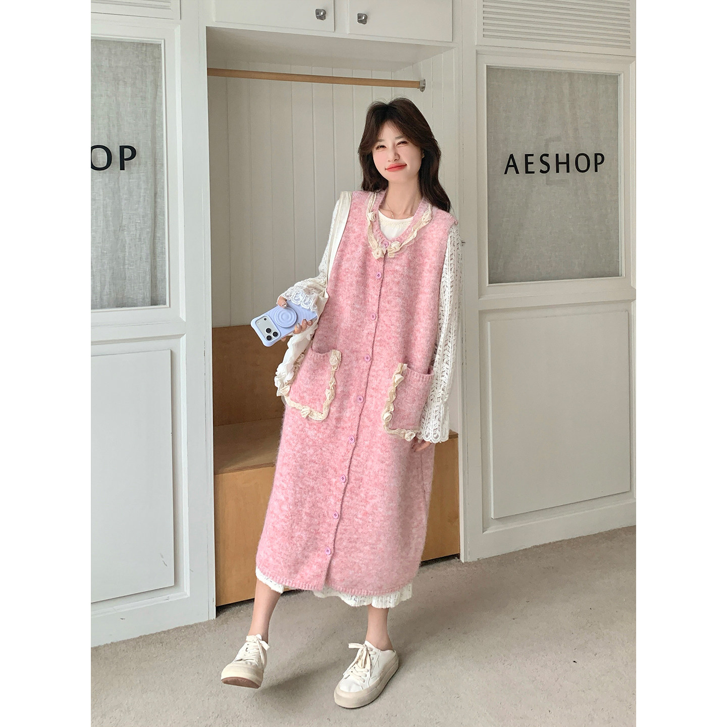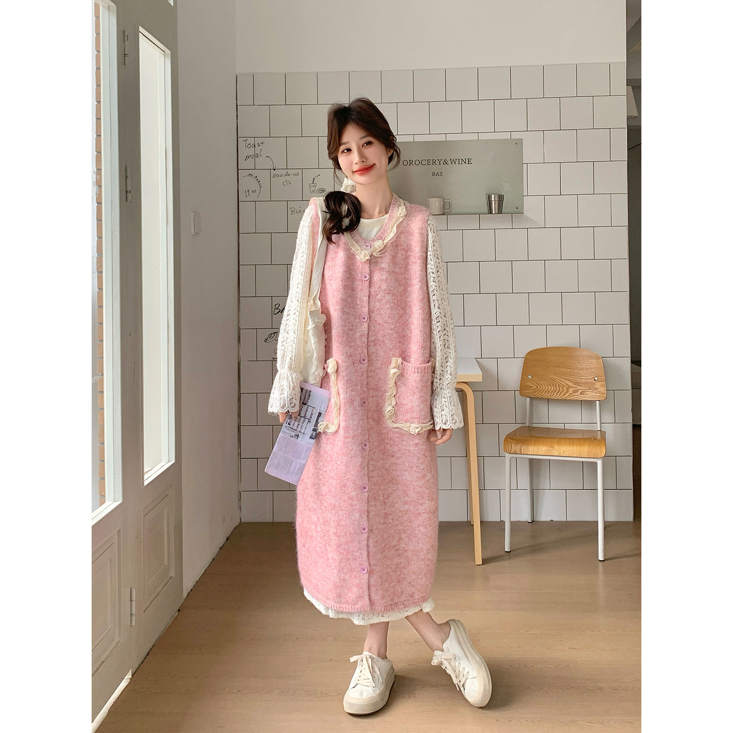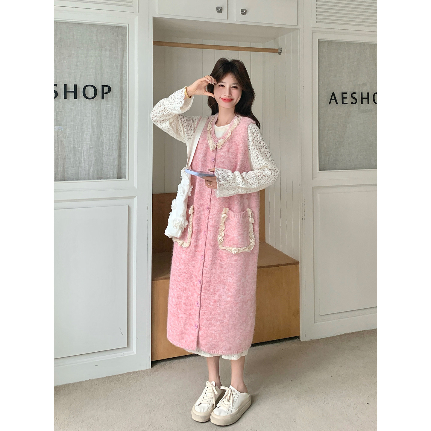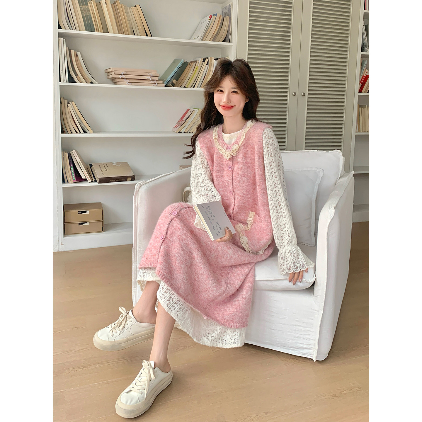 独特漂亮立体花朵针织罩衫连衣裙套装女早春2026新款甜美减龄穿搭