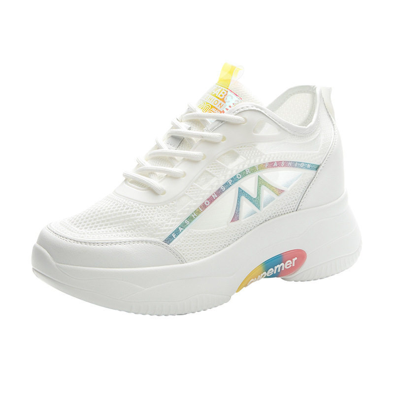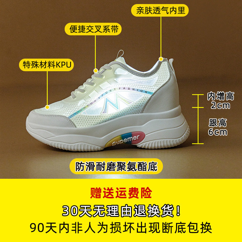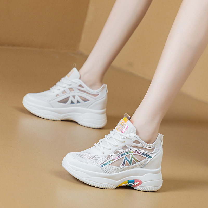 内增高女鞋网面透气夏季薄款运动鞋女休闲软底网鞋轻便夏天小白鞋