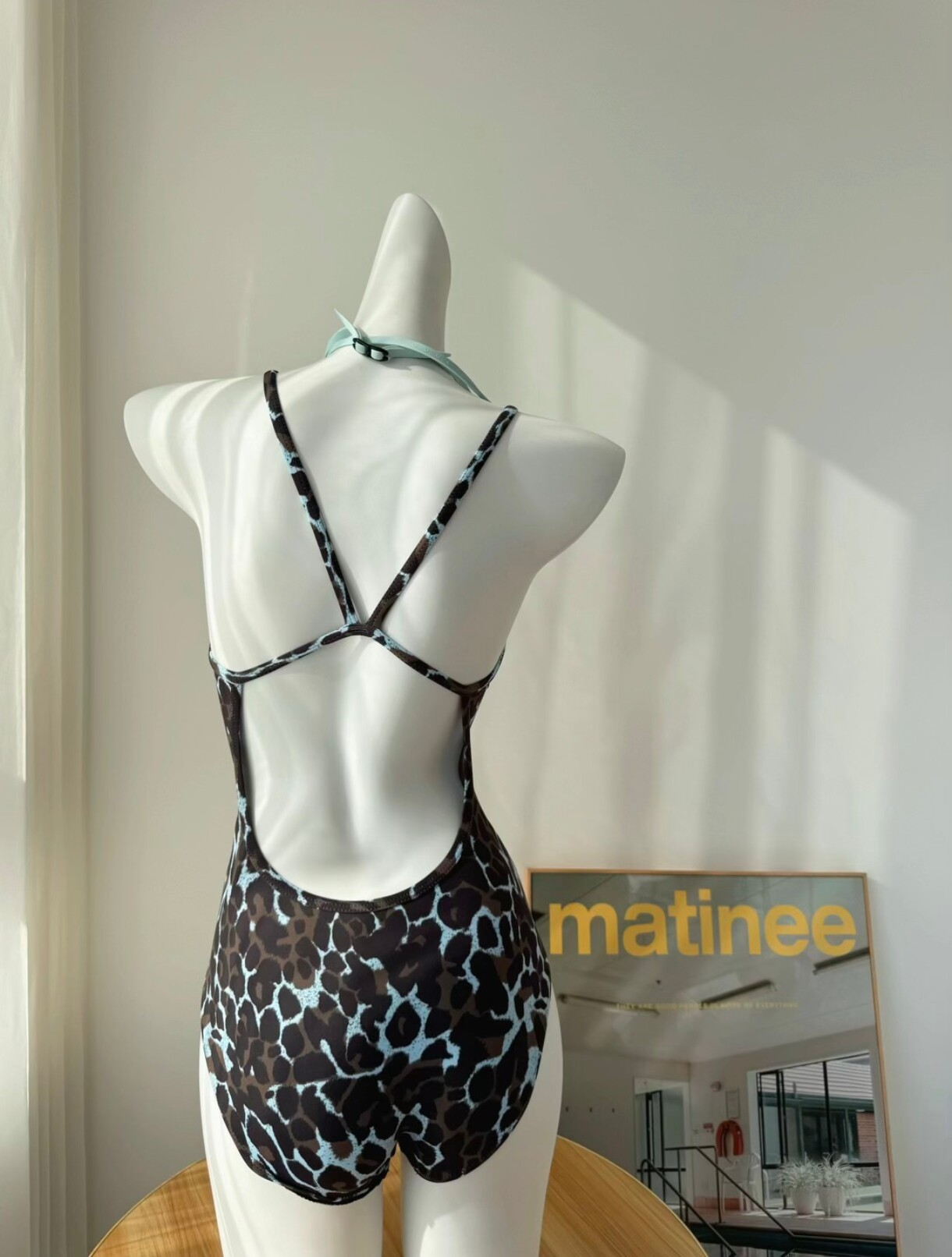 单层豹纹竞速运动女款游泳衣连体三角露背高颜值显瘦时尚亮眼泳装