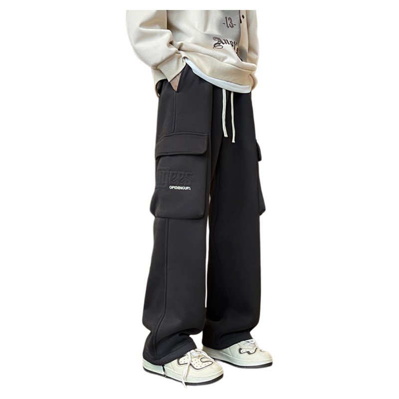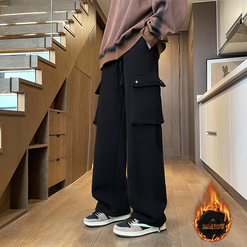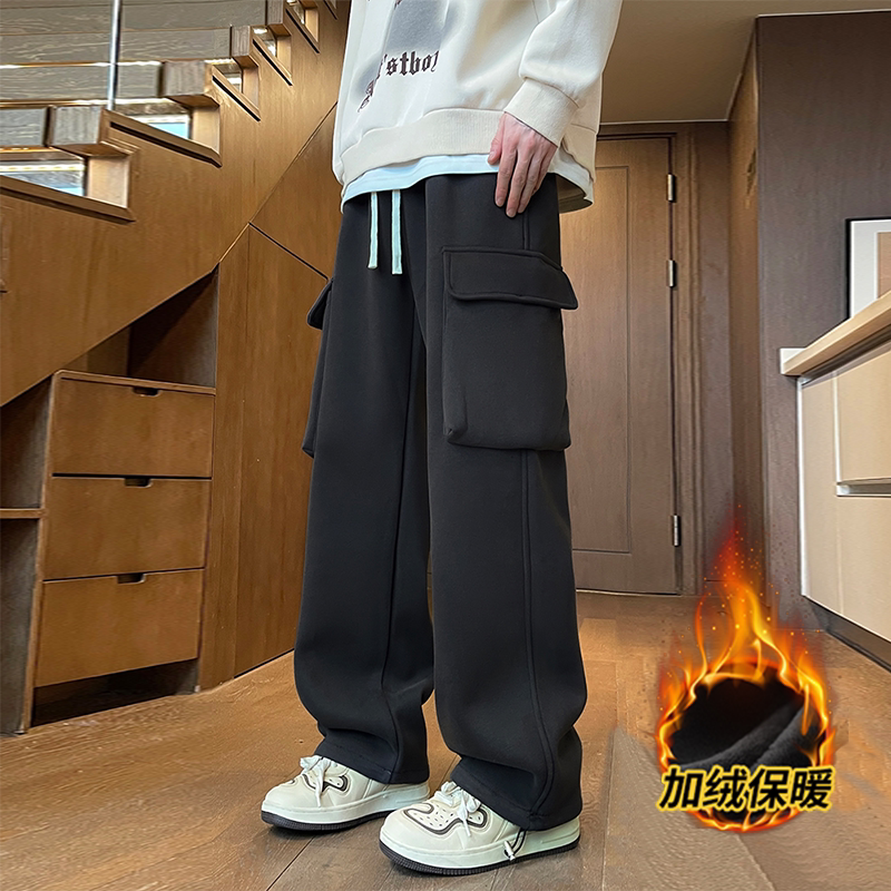 秋冬季工装长裤子男生青少年初高中学生运动休闲加绒加厚卫裤男装