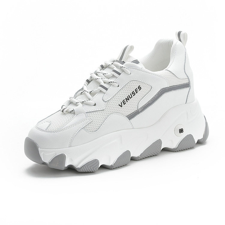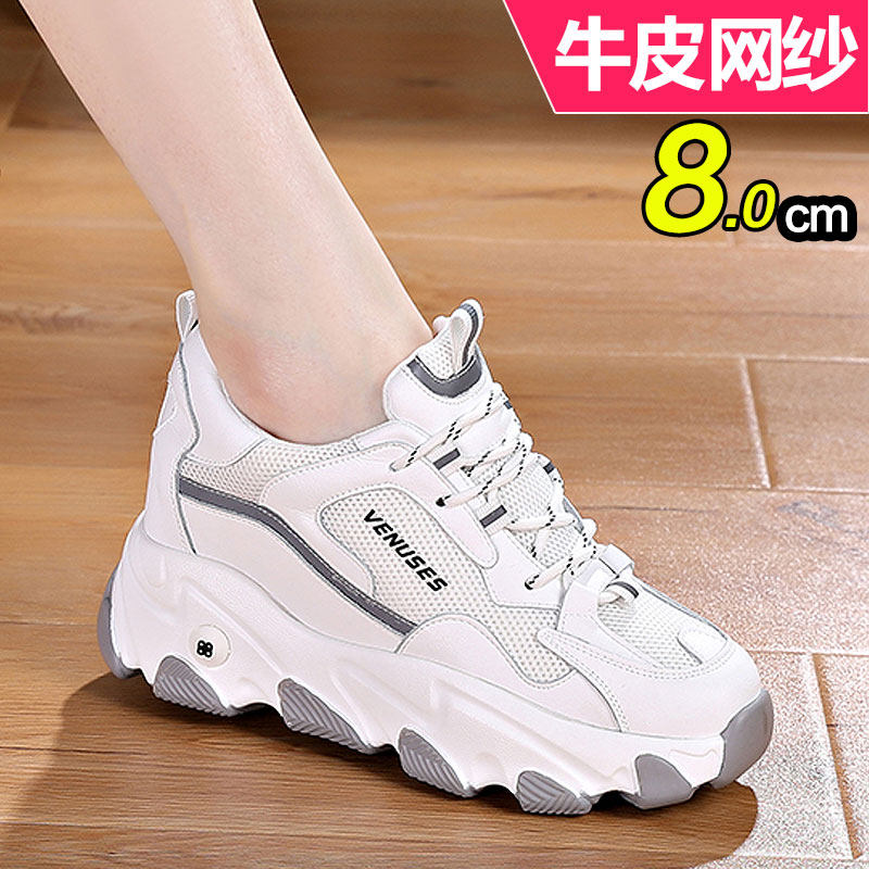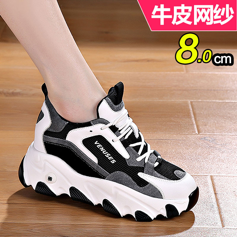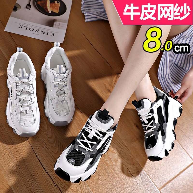 牛皮小个子软底老爹鞋内增高8cm休闲运动女单鞋春百搭厚底小白鞋