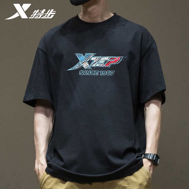 特步纯棉短袖t恤男2026夏季新款潮流男士运动上衣健身休闲宽松短T