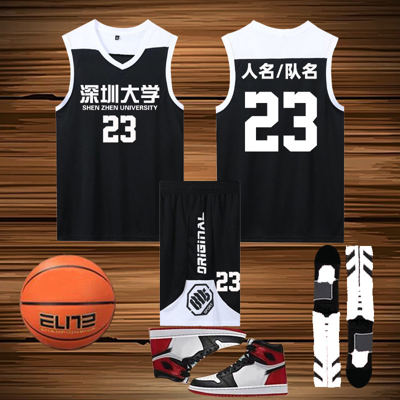 成人儿童篮球服套装男女初中生投篮训练服团购定制印字号128黑色