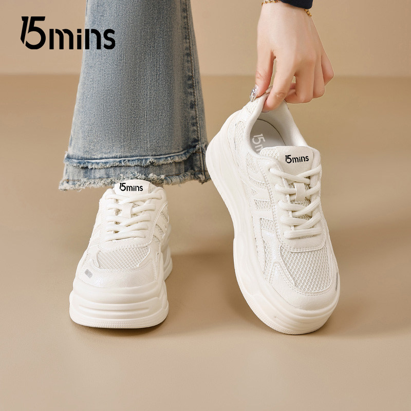 15mins厚底小白鞋女款2026新款夏季增高百搭配裙子软底休闲板鞋子