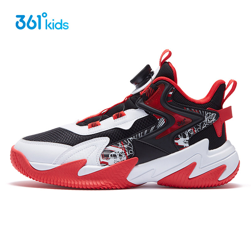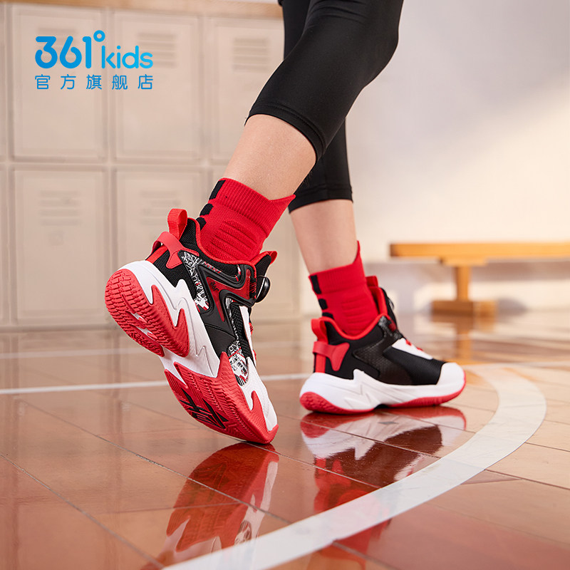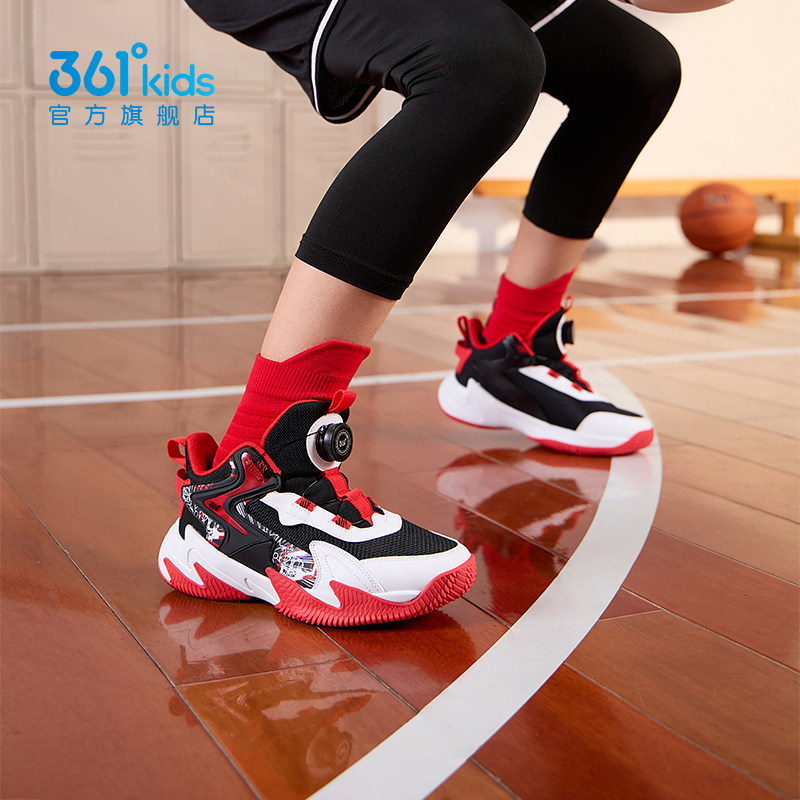 悍将|361童鞋男童篮球鞋旋钮鞋子2026春红色减震中大童儿童运动鞋