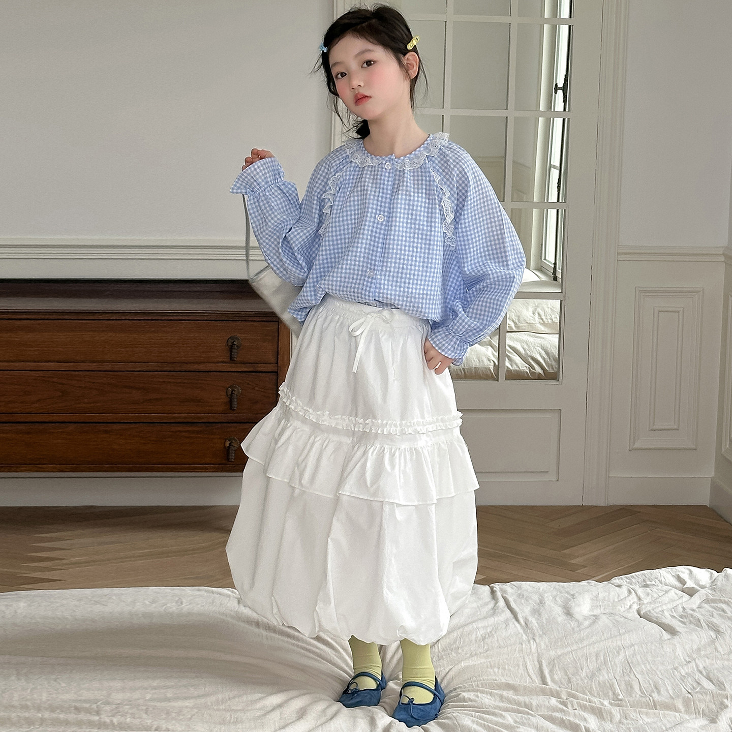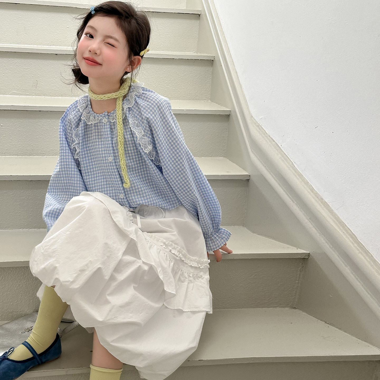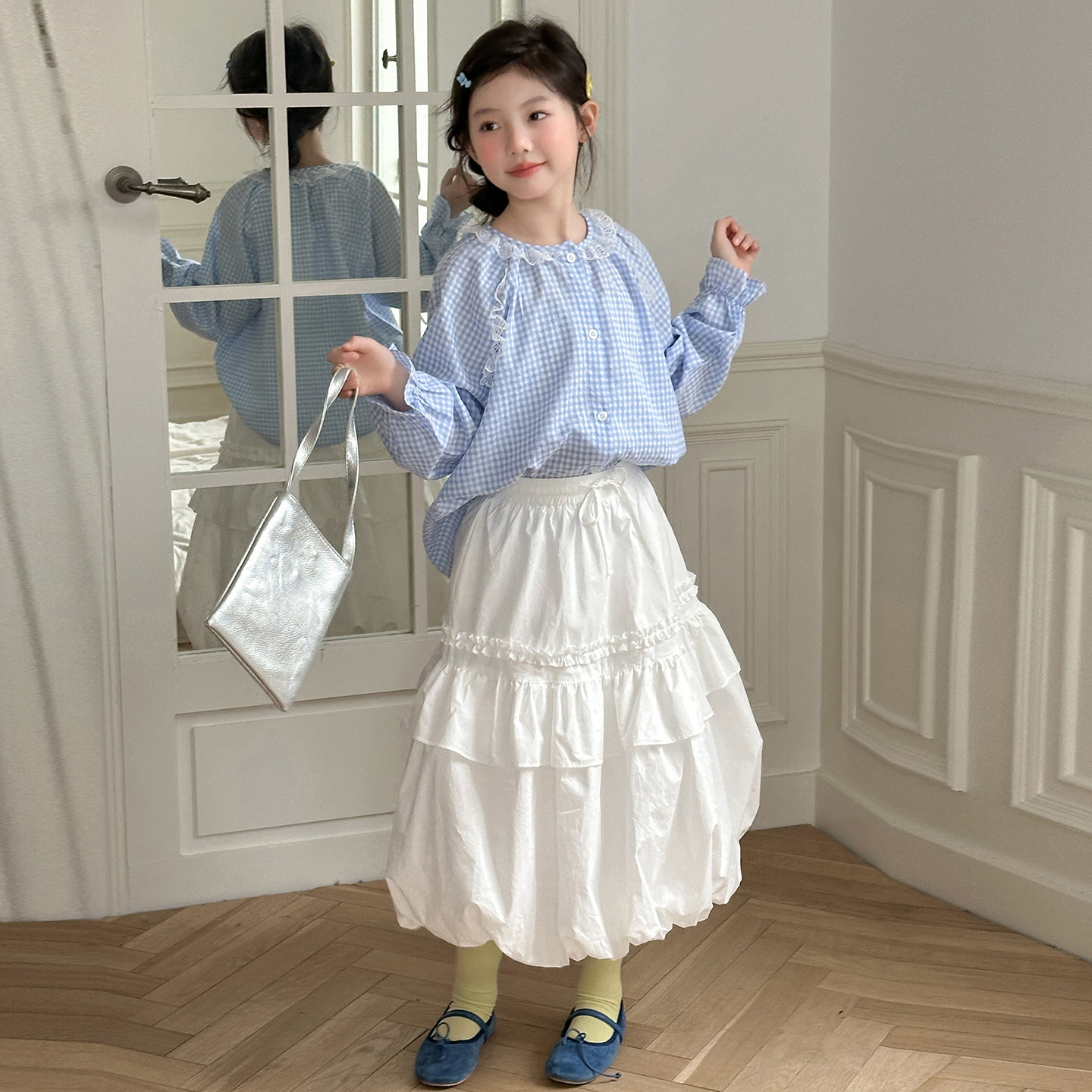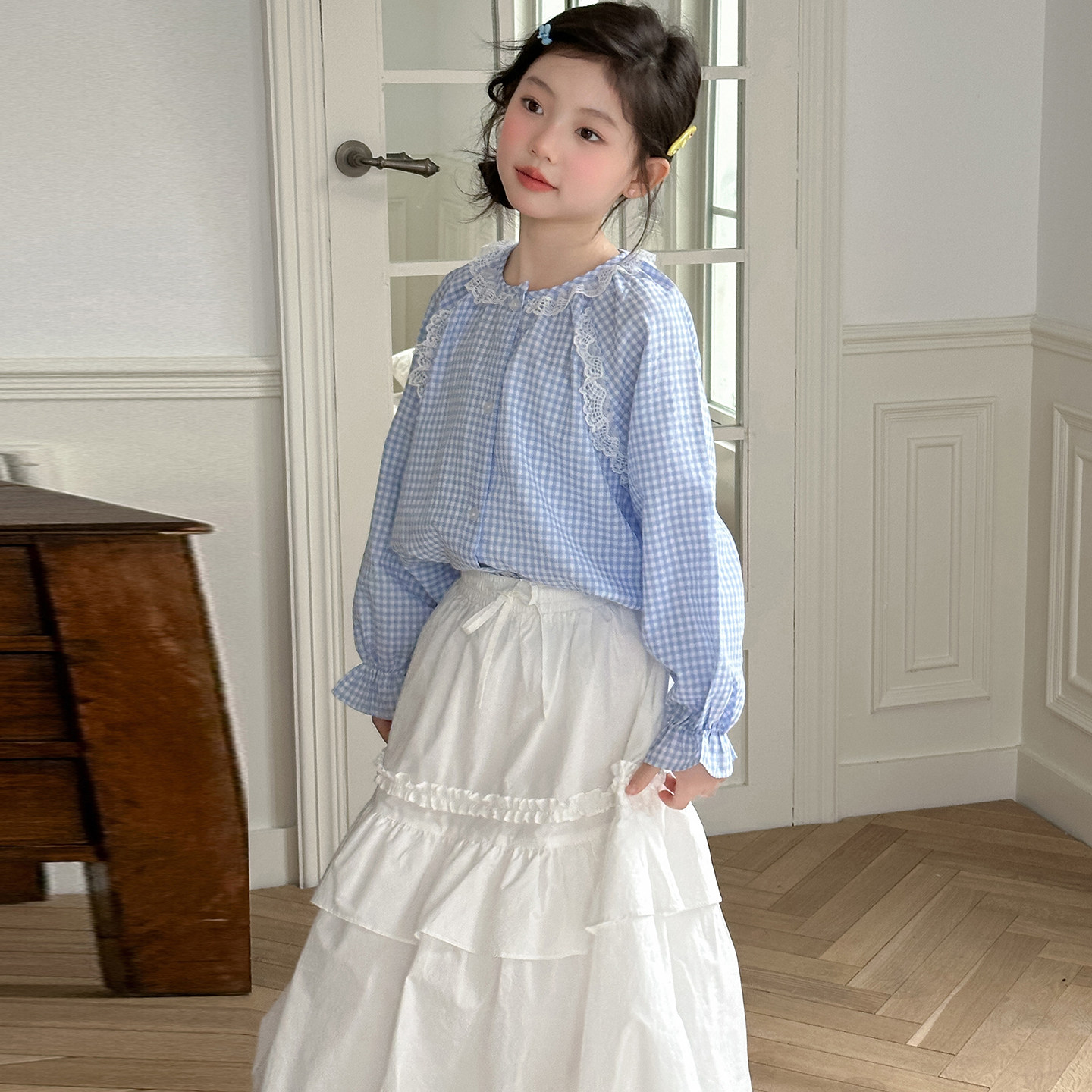 女童格子半身裙套装春夏2026新款女孩春装洋气连衣裙儿童两件套裙