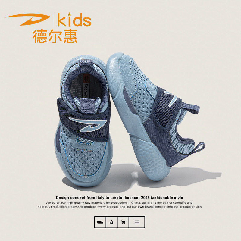 德尔惠童鞋男童软底轻便运动鞋女童透气网面休闲鞋中大童跑步鞋潮