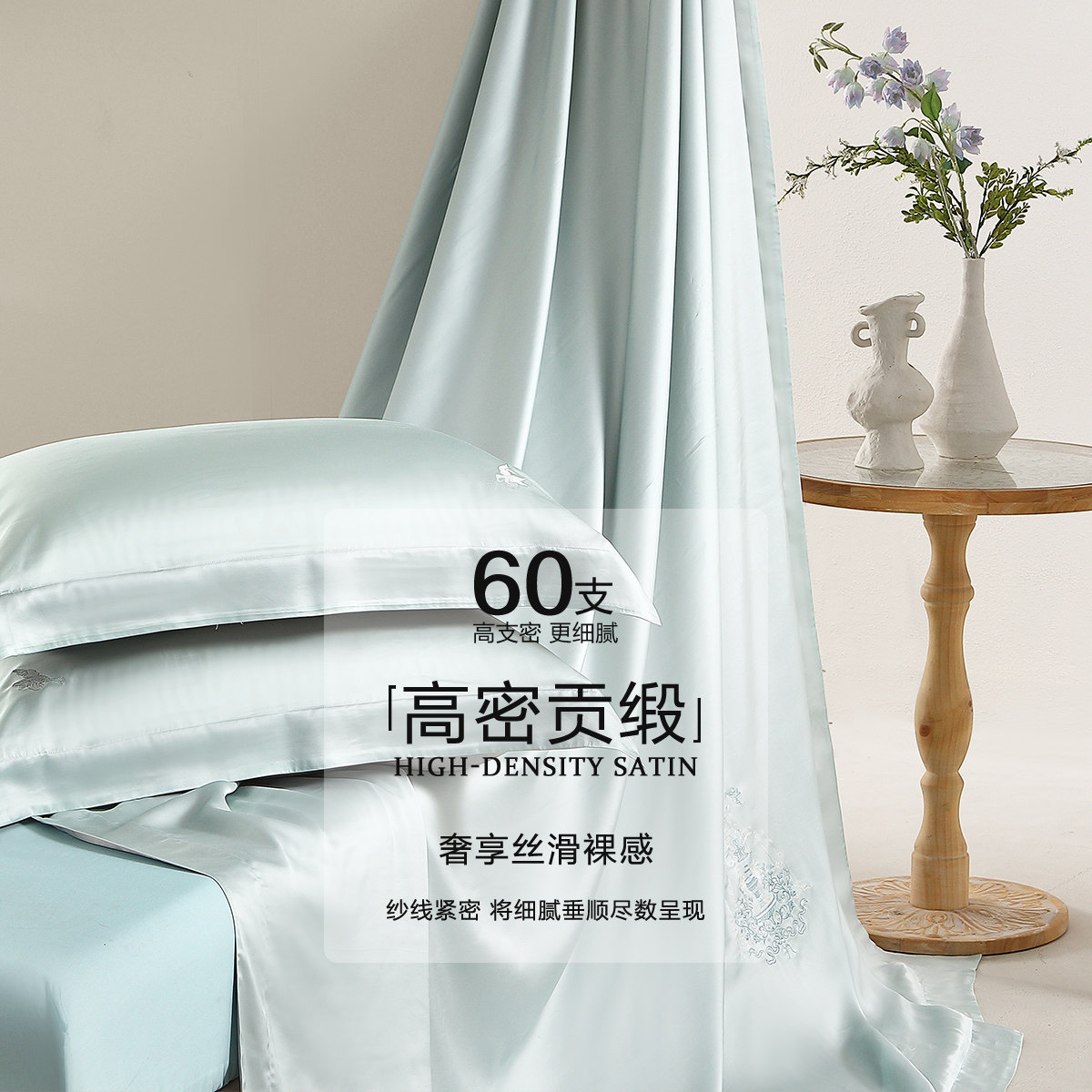 水星家纺60支天丝棉四件套凉感莱赛尔贡缎轻奢被套床上用品26新夏