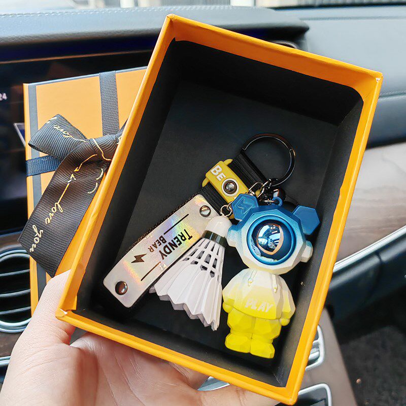 创意渐变闪电熊羽毛球挂件男生情侣礼品精致钥匙扣羽毛球包挂饰女