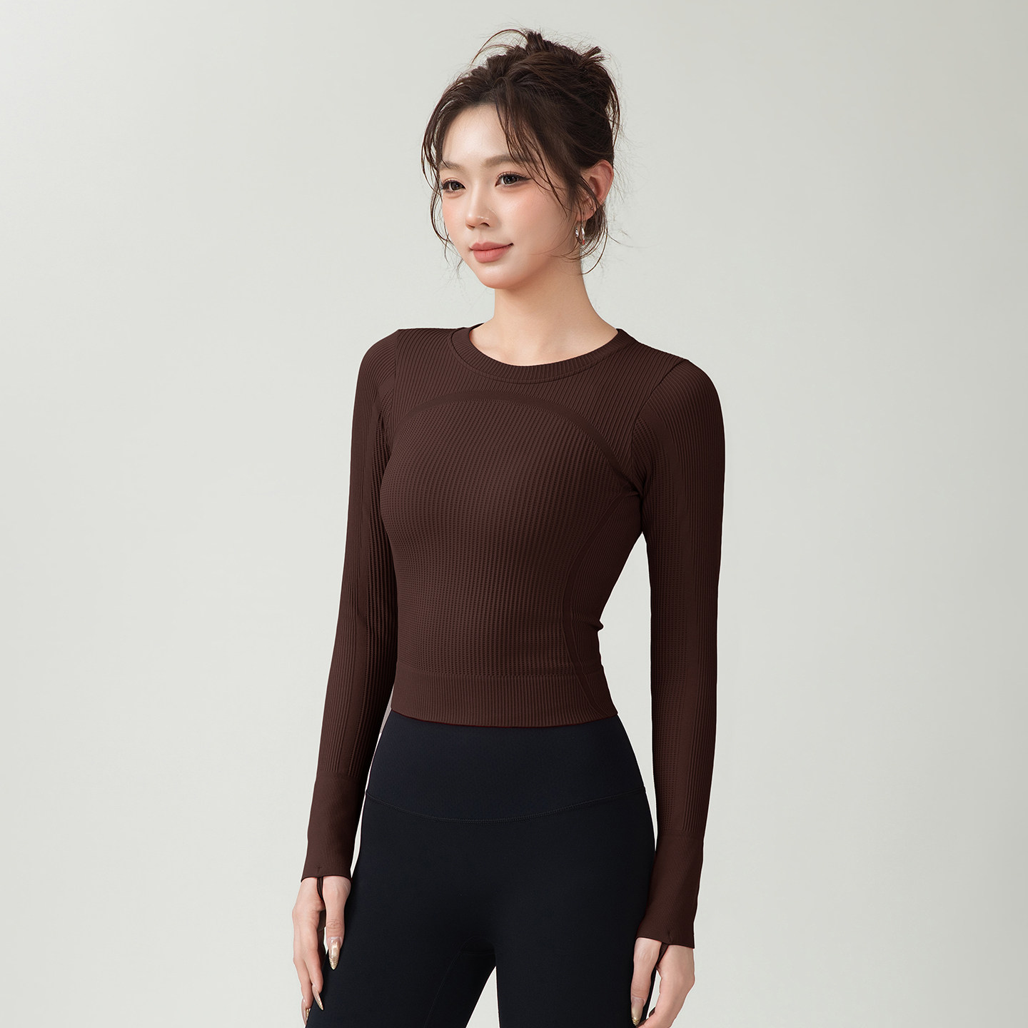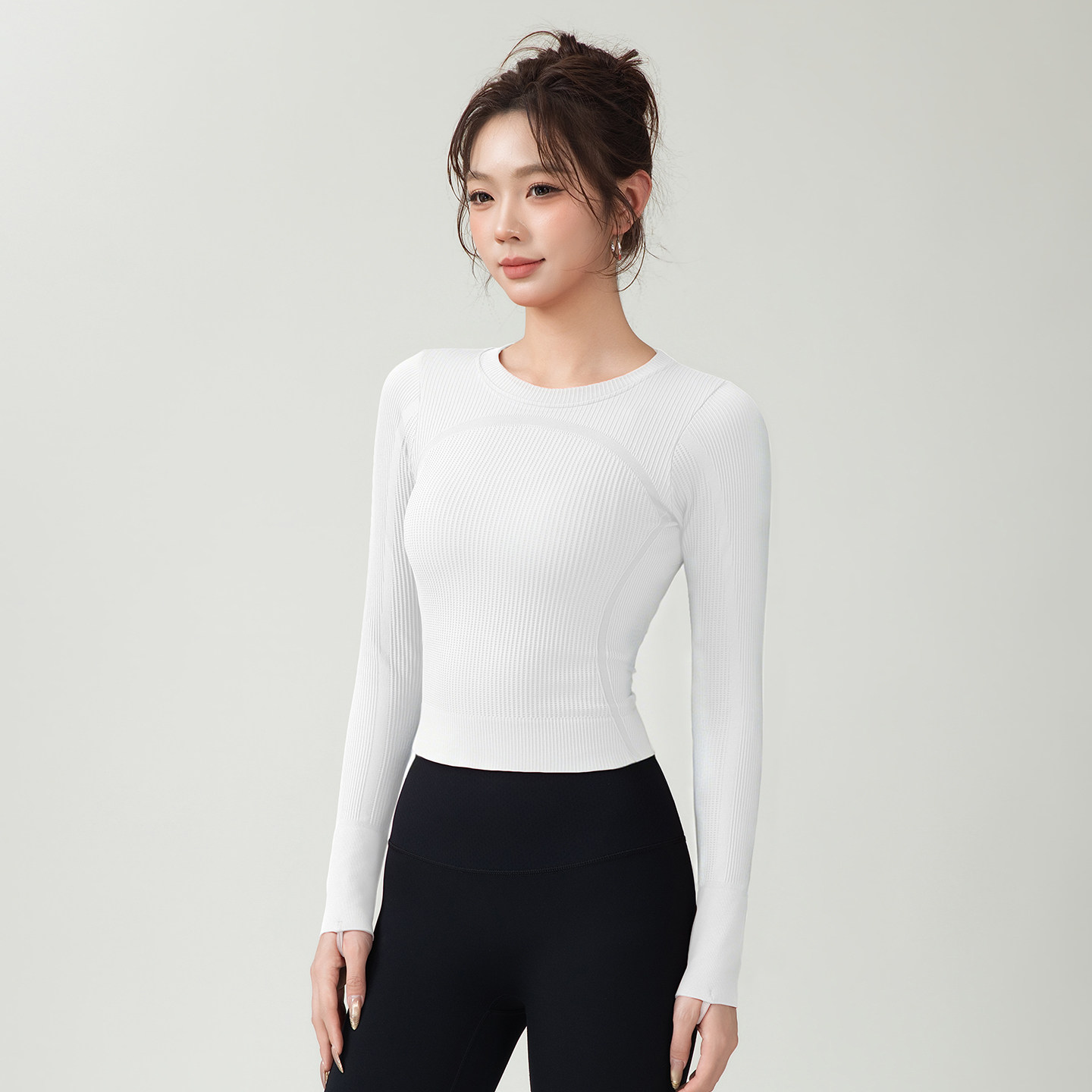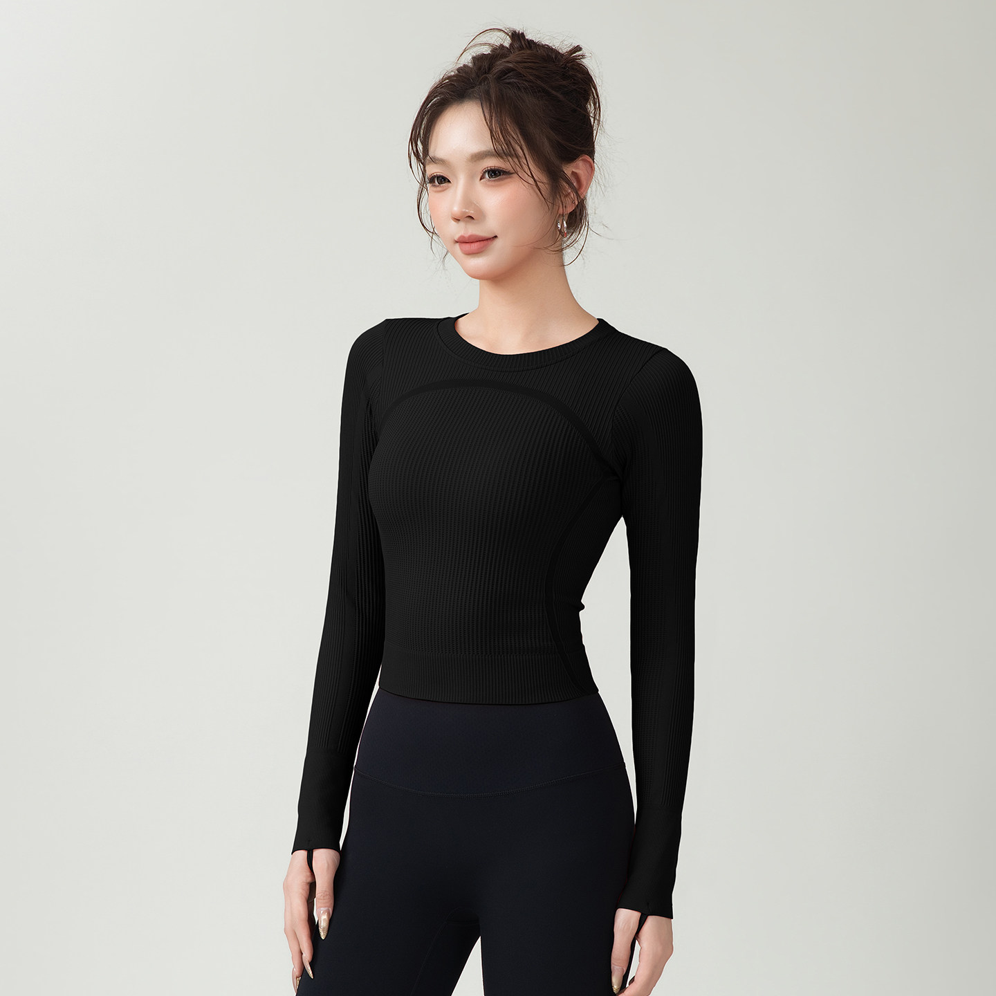 lu同款健身服长袖无缝高弹短款运动上衣女修身显瘦瑜伽服户外紧身