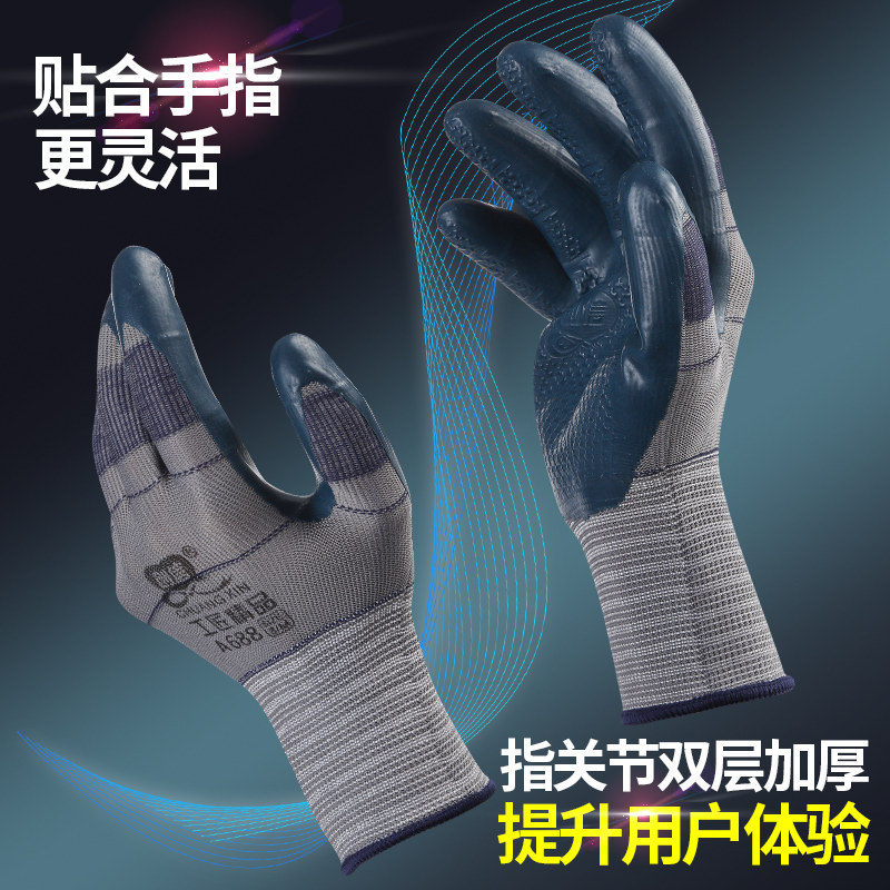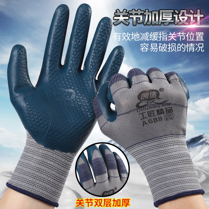 进口劳保手套耐磨工作男士工地干活用的薄手套加厚胶皮橡胶压纹胶