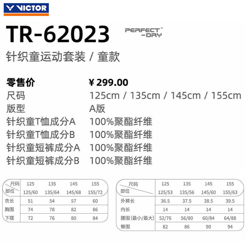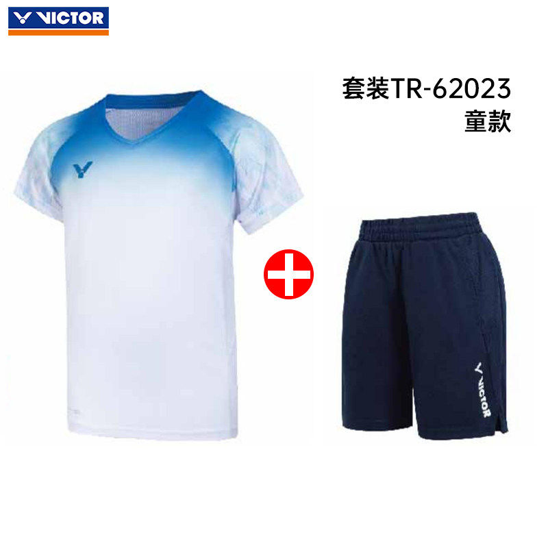 VICTOR胜利威克多羽毛球服儿童款针织童运动套装T恤短裤TR-62023