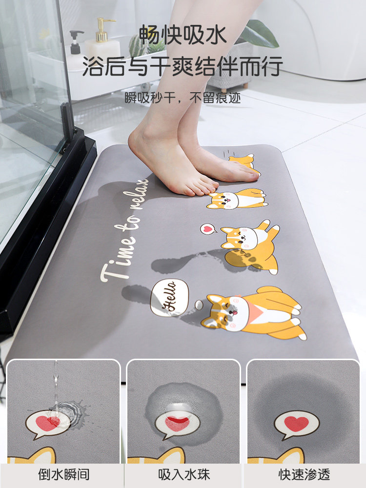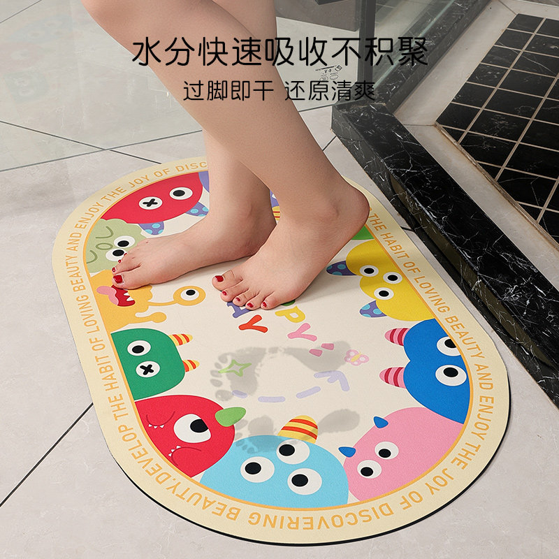 尚美巢品卡通浴室地垫卫生间吸水速干脚垫硅藻泥淋浴洗澡防滑垫子