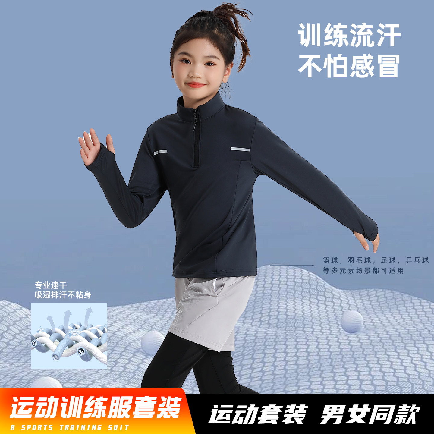 秋冬羽毛球服速干衣男童乒乓球衣足球篮球服运动套装网球服班服