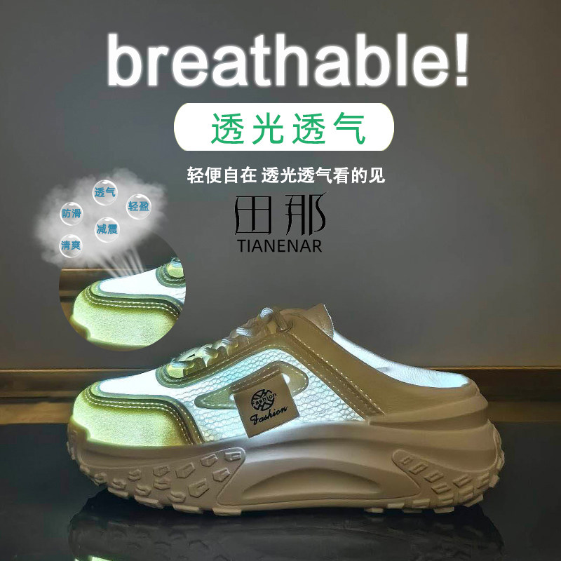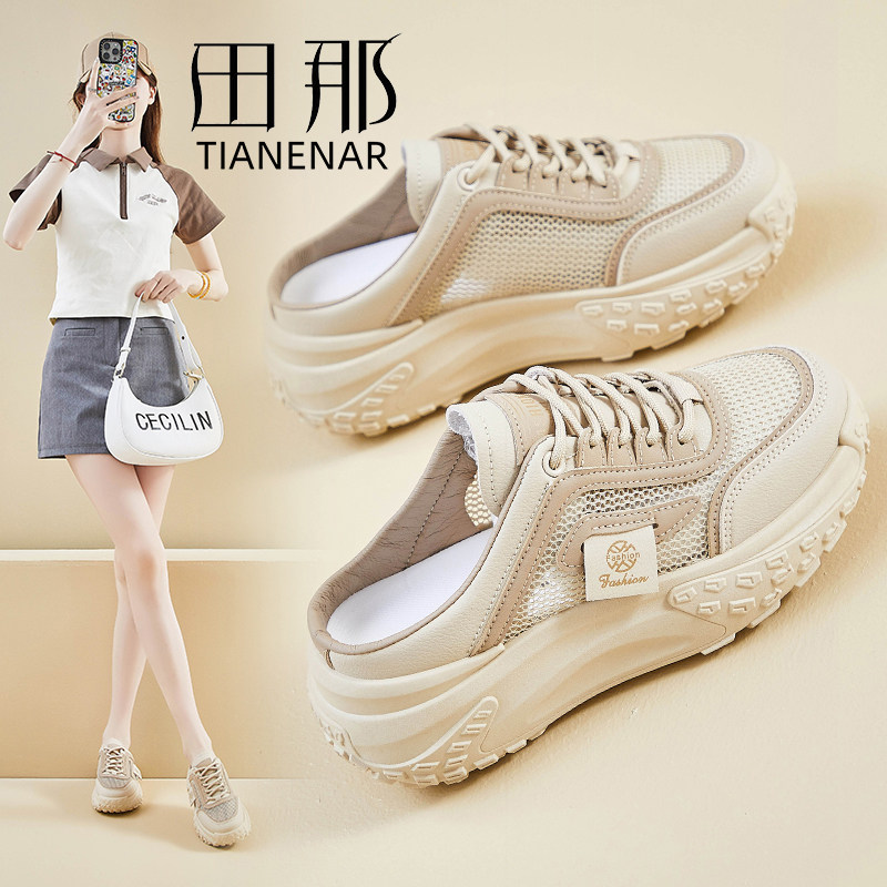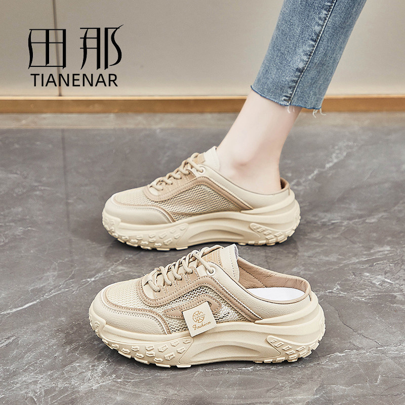 田那2026夏季新款厚底半拖休闲鞋女鞋网面透气懒人外穿凉包头拖鞋