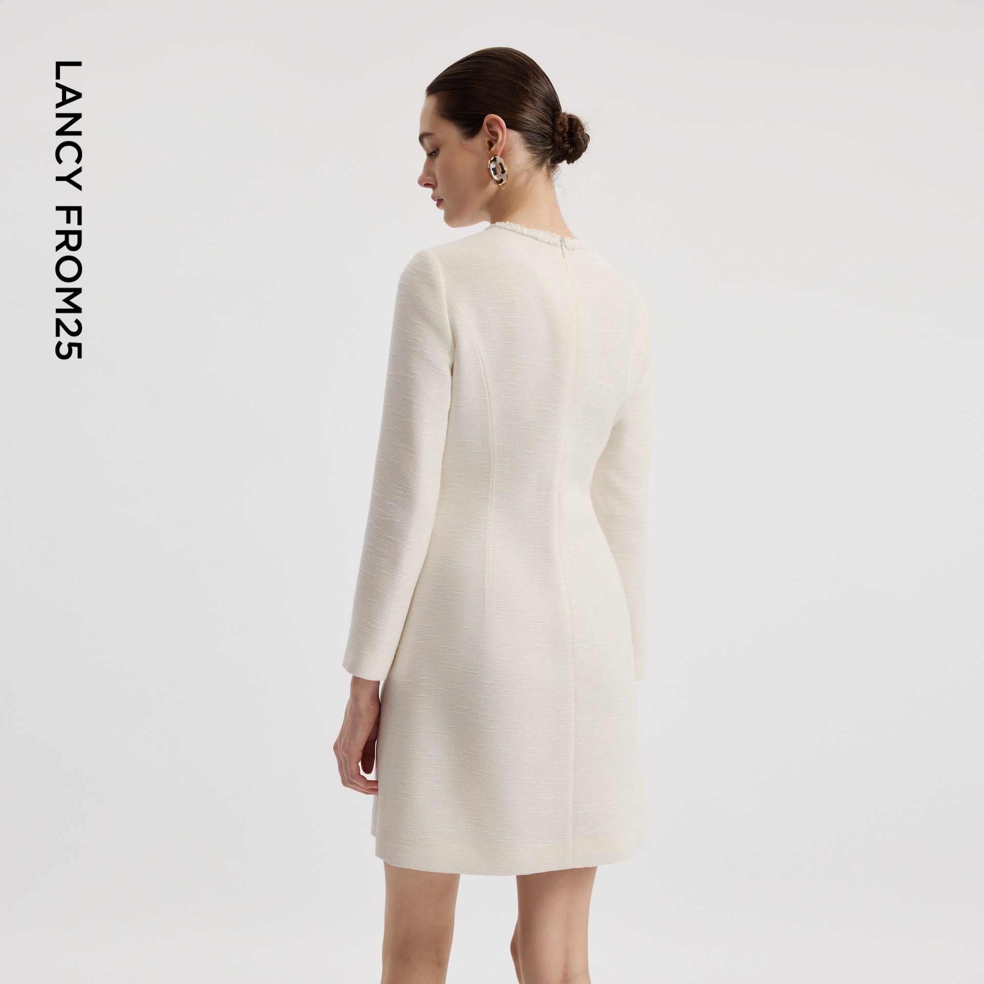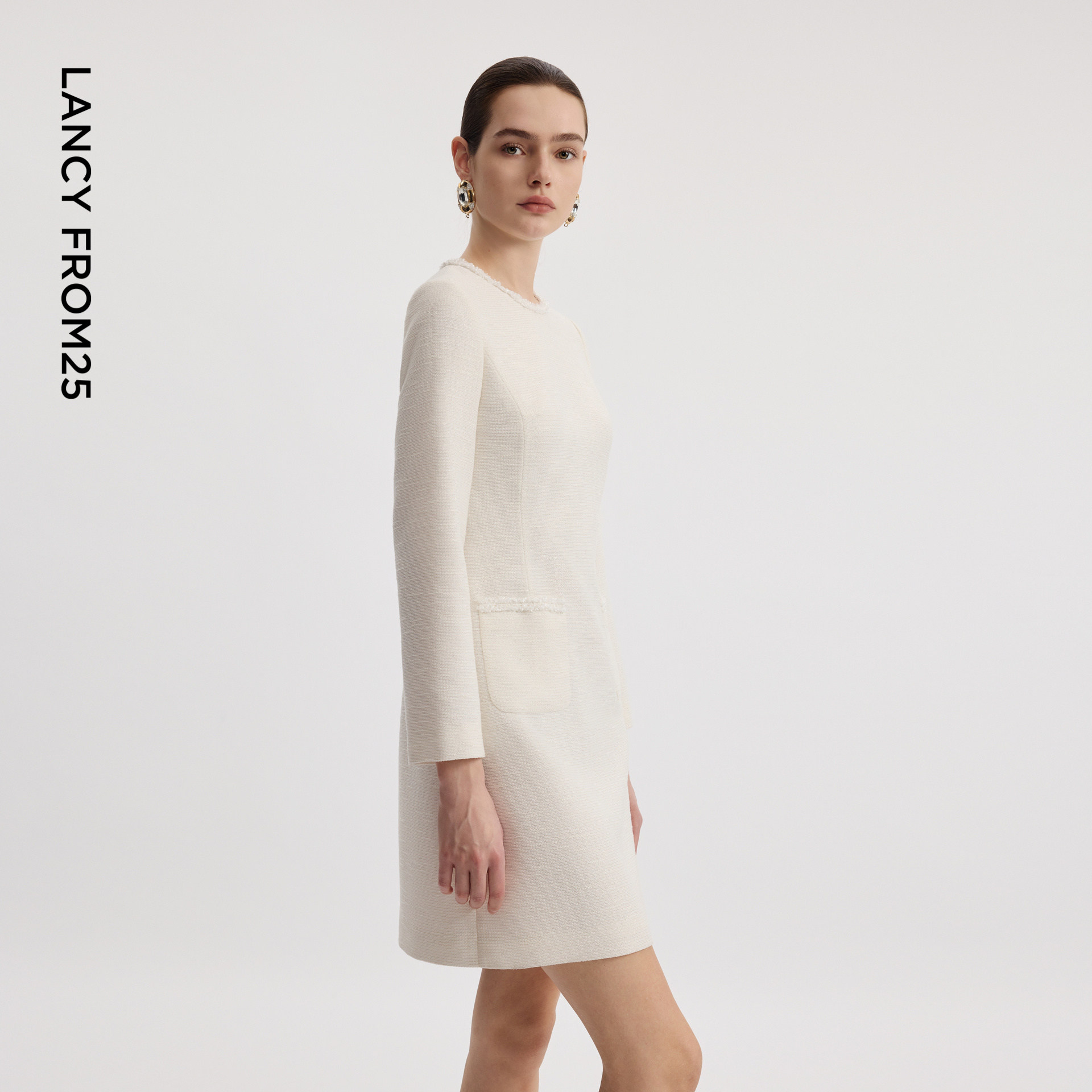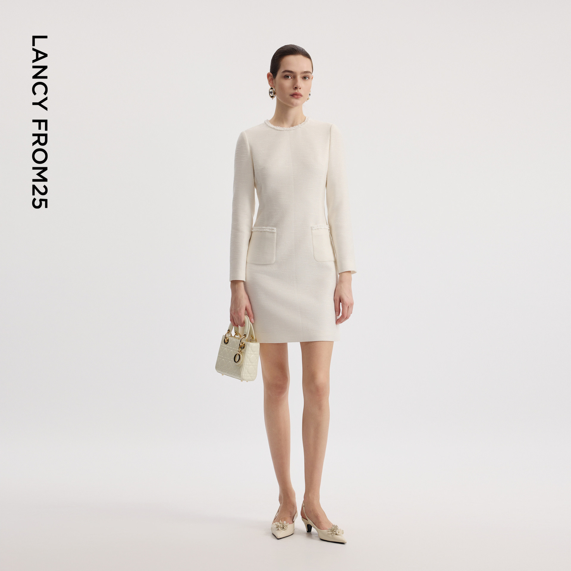 朗姿2026年春季新款白色修身小香风优雅连衣裙法式高级感女士
