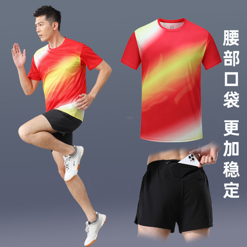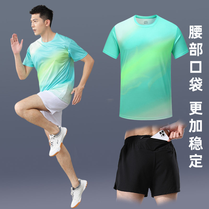 跑步运动套装男女晨跑服健身衣服训练服短袖短裤套装可放手机