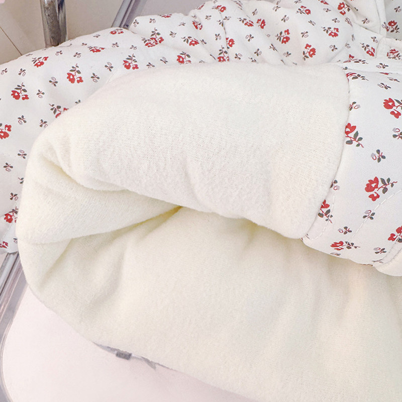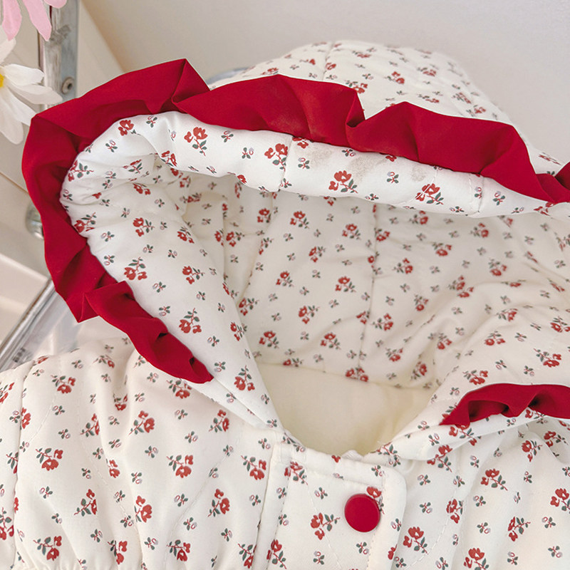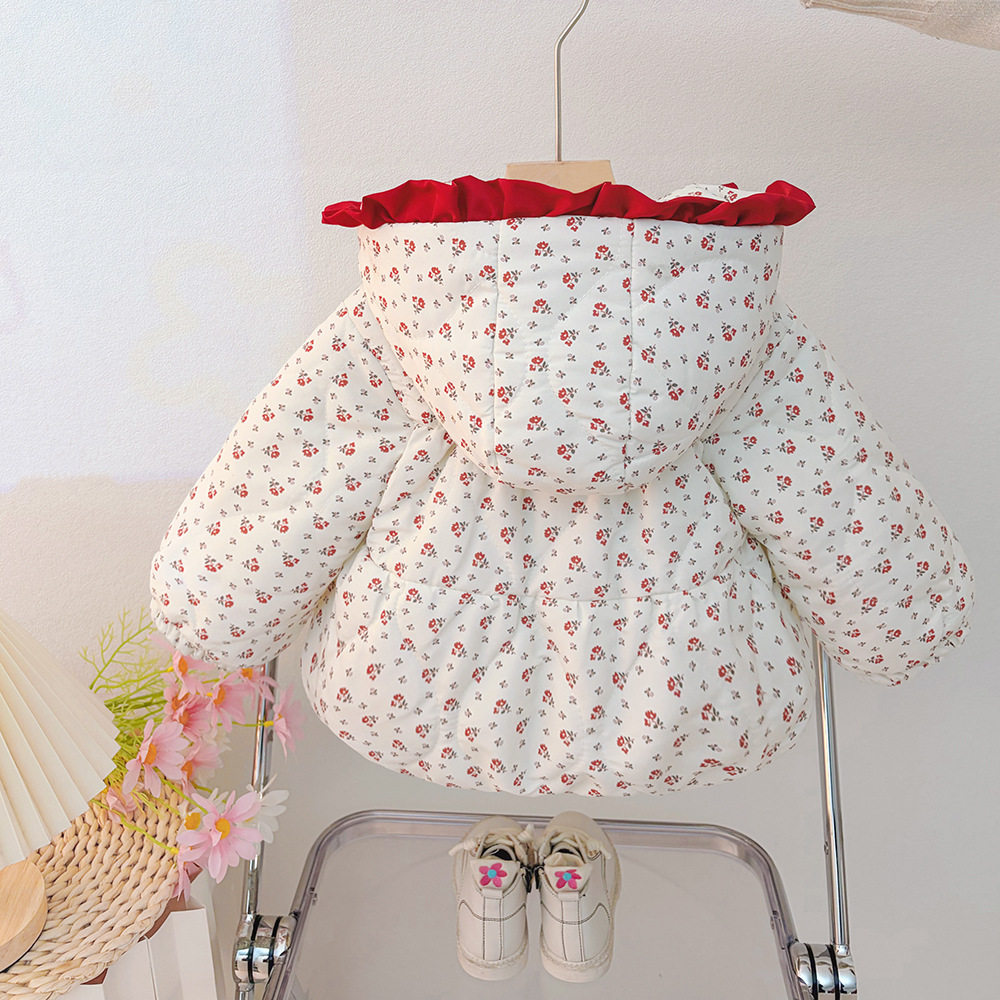 女童棉服冬季儿童宝宝碎花棉袄加绒加厚围巾连帽洋气保暖棉衣外套
