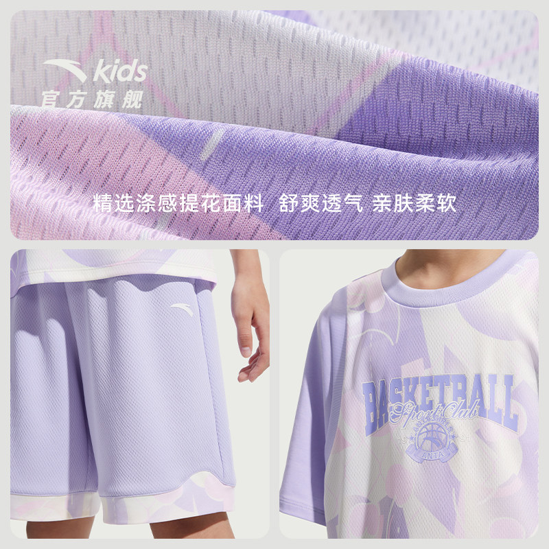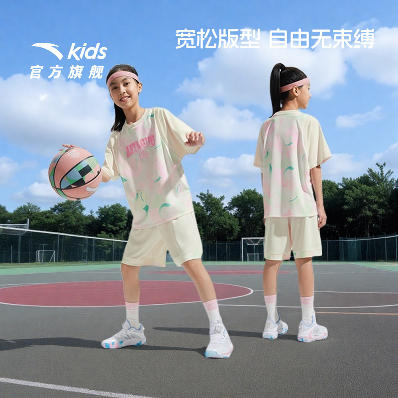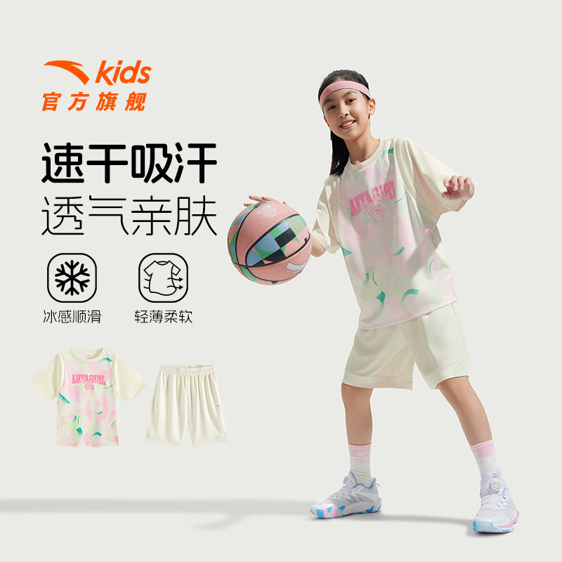 安踏儿童装女童套装夏装2026款速干篮球运动套装少女短袖T恤短裤