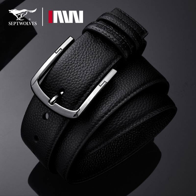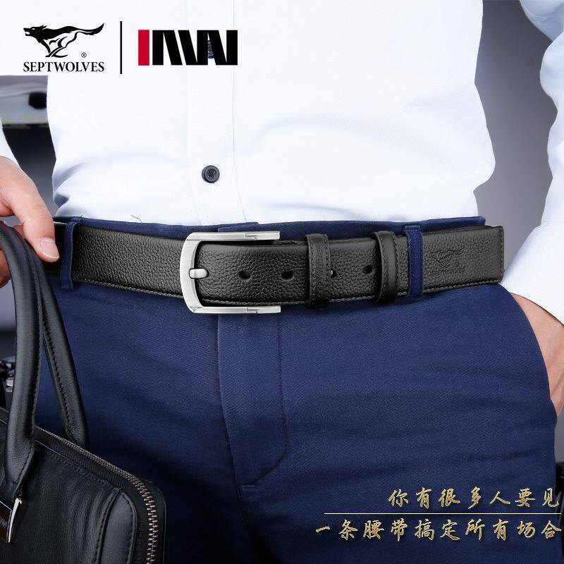 七匹狼皮带男士真皮针扣腰带头层牛皮扣眼西服裤带情人节送男友潮