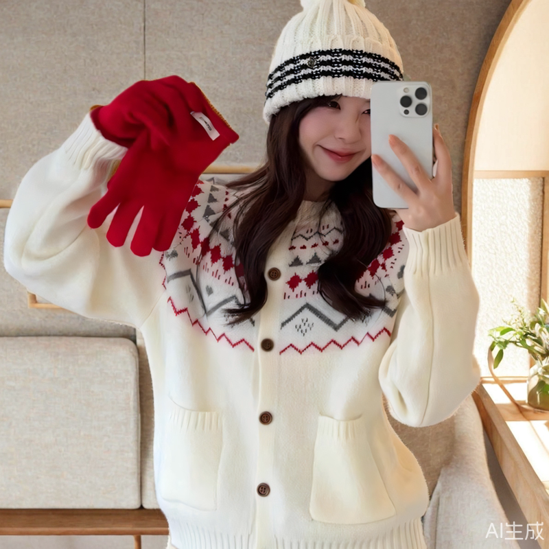 春秋冬款新款加厚高级感软糯宽松慵懒风长袖提花针织毛衣外套上衣