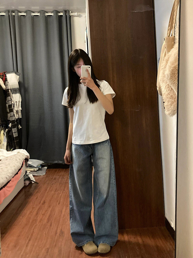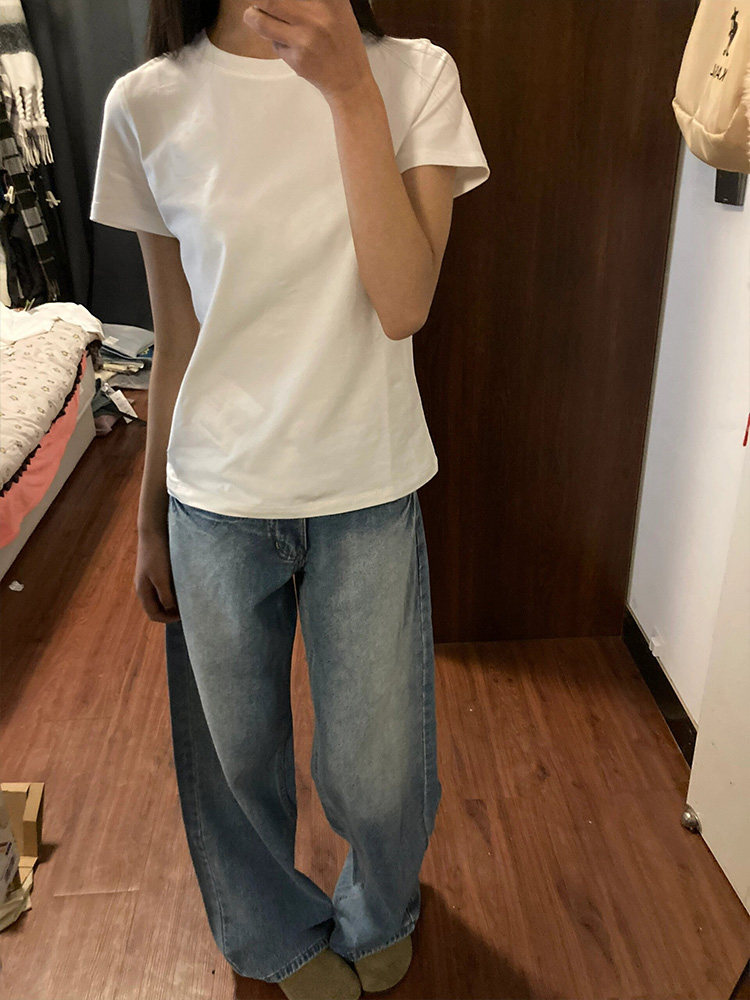 美式正肩白色纯棉t恤女短袖2026新款夏季小个子修身显瘦短款上衣