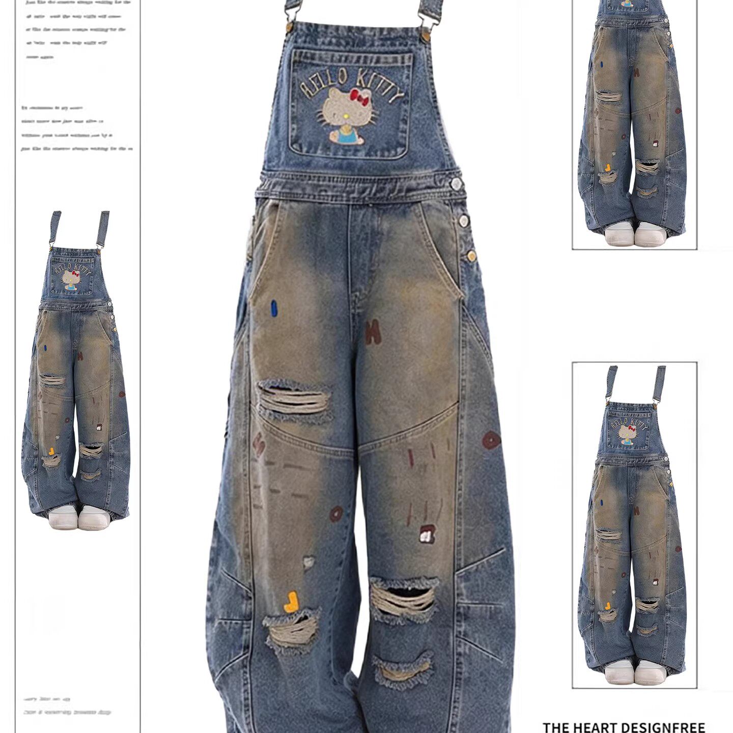 美式高街复古泼墨牛仔背带裤裤子女款2026夏季新款宽松刺绣直筒裤