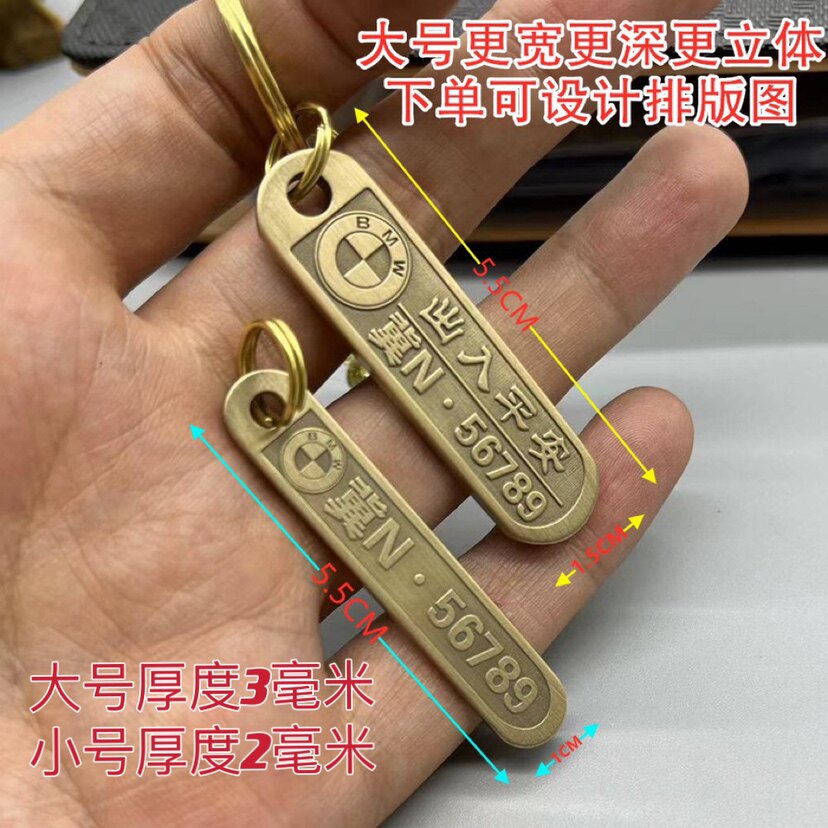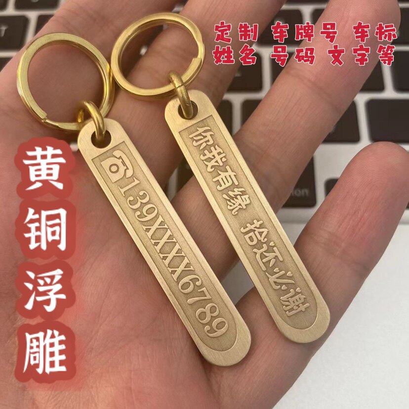 手工黄铜钥匙扣电话号码黄铜浮雕刻字防丢牌男女挂件个性吊坠定制