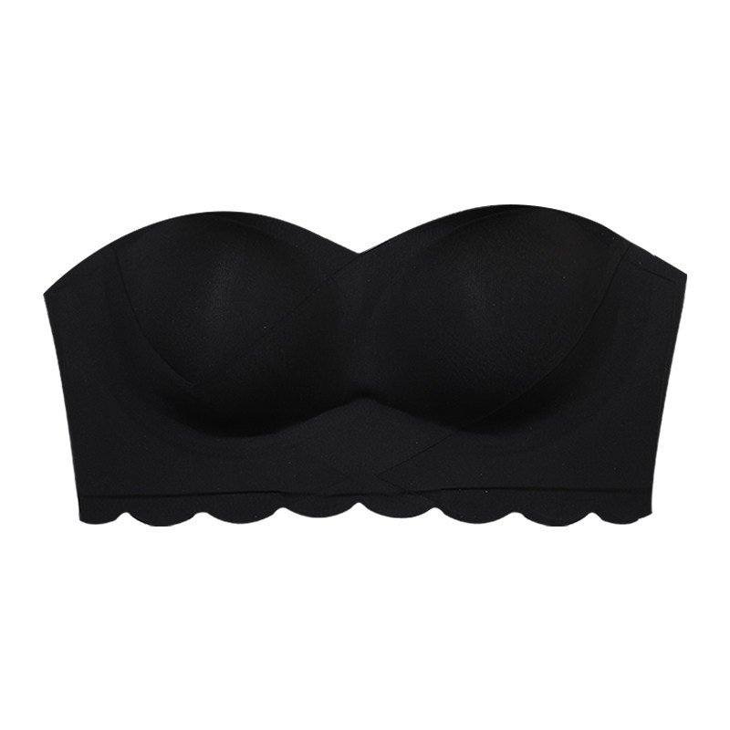 无肩带内衣女加厚8CM小胸聚拢防滑不掉无痕简约黑色光面裹胸文胸