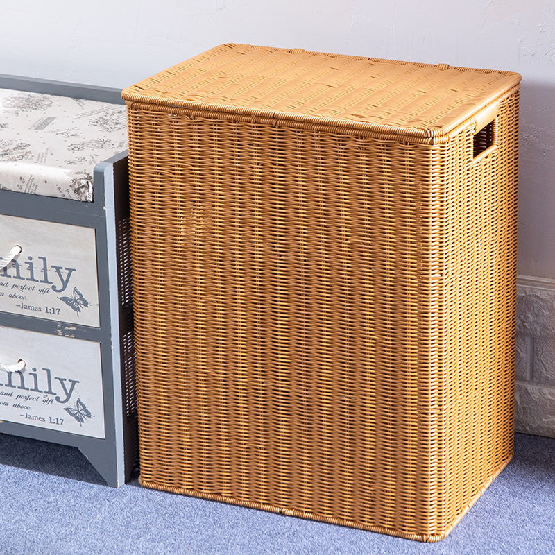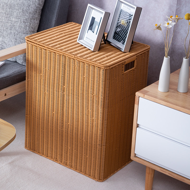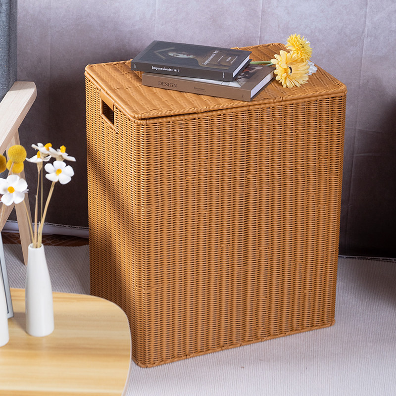 仿藤编脏衣服收纳筐编织卫生间方形储物箱脏衣篮带盖子卧室收纳箱