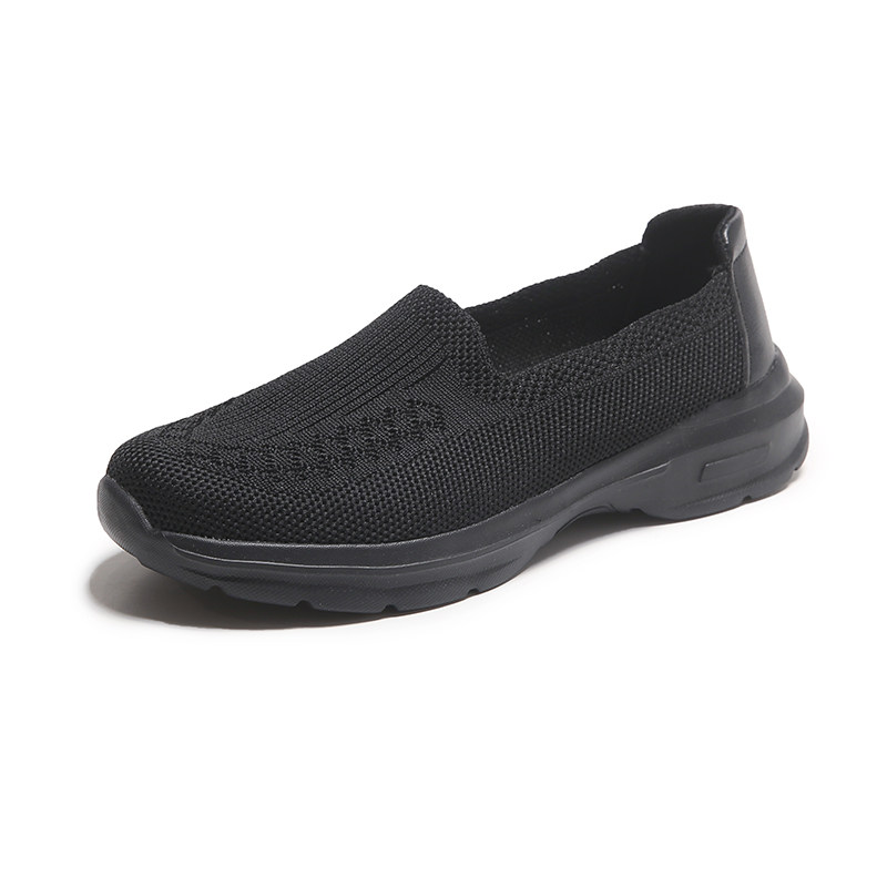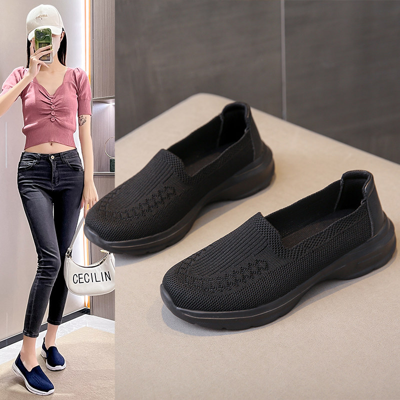 老北京布鞋女一脚蹬妈妈鞋软底春秋网面透气运动工作鞋女款全黑色