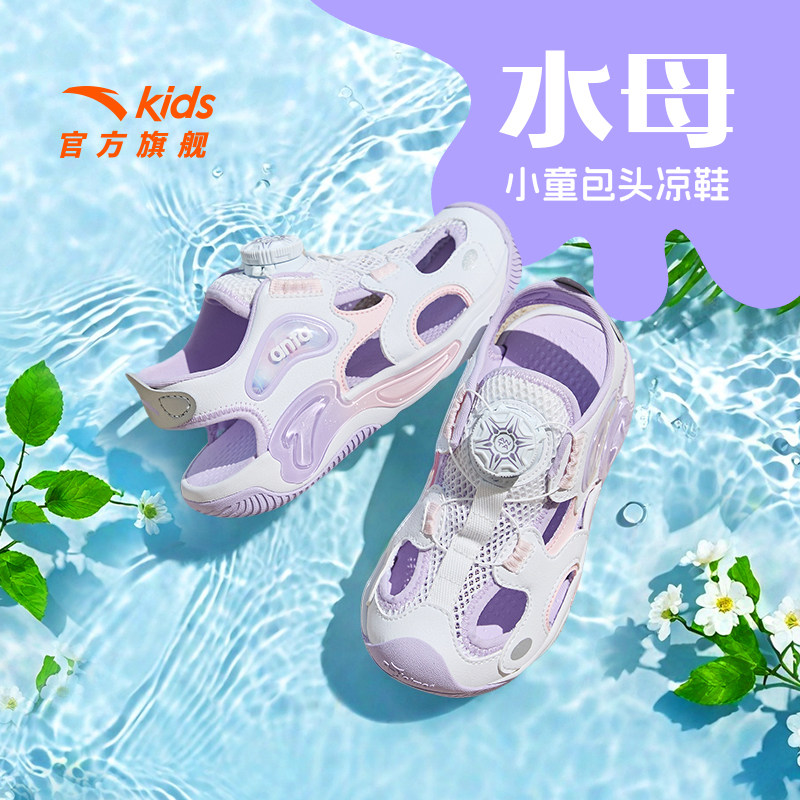 安踏儿童水母包头运动凉鞋夏款小童女童纽扣防滑女孩溯溪沙滩鞋