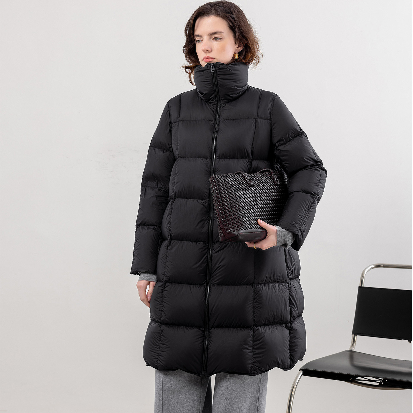 鹅绒羽绒服女款2025新款冬季显瘦立领宽松加厚过膝保暖长款式外套