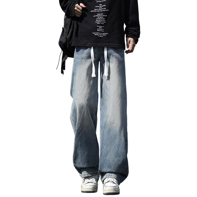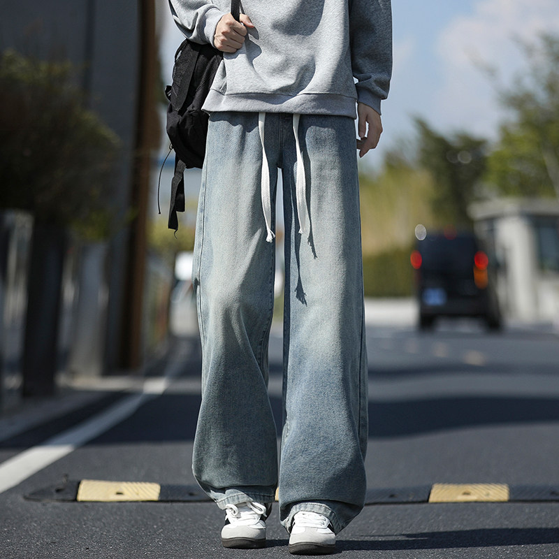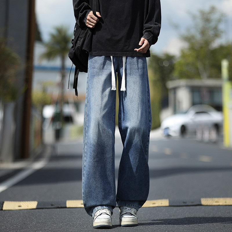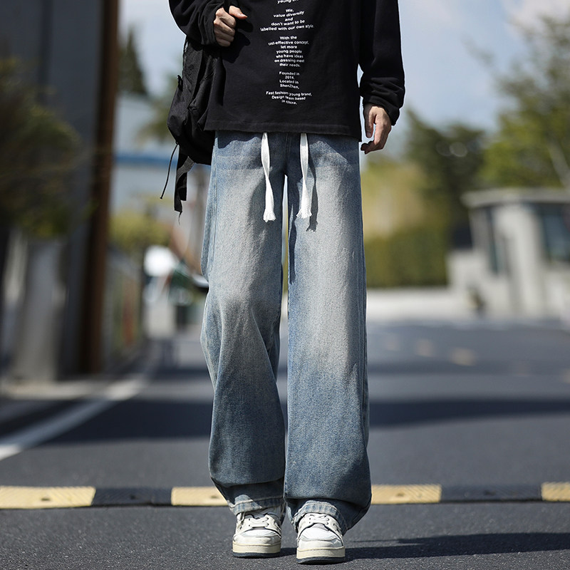 牛仔裤男款春季2026新款宽松直筒松紧腰复古水洗美式春夏男士裤子