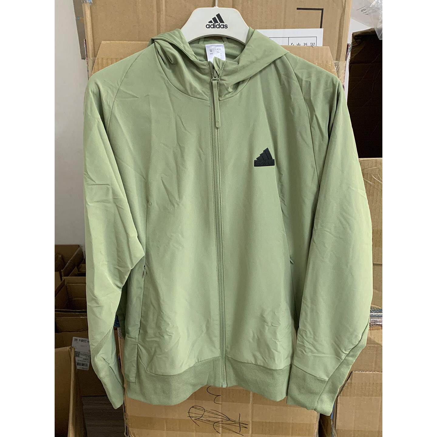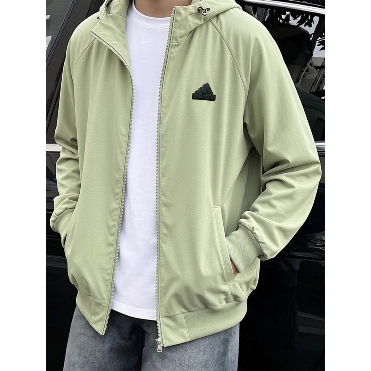 阿迪达斯外套男春季新款透气美式篮球运动服连帽复古绿色针织夹克