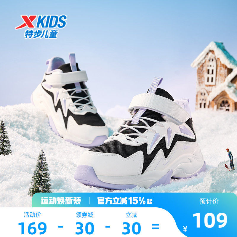 特步童鞋秋冬新款中大童女童加绒雪地休闲鞋儿童运动防滑耐磨棉鞋