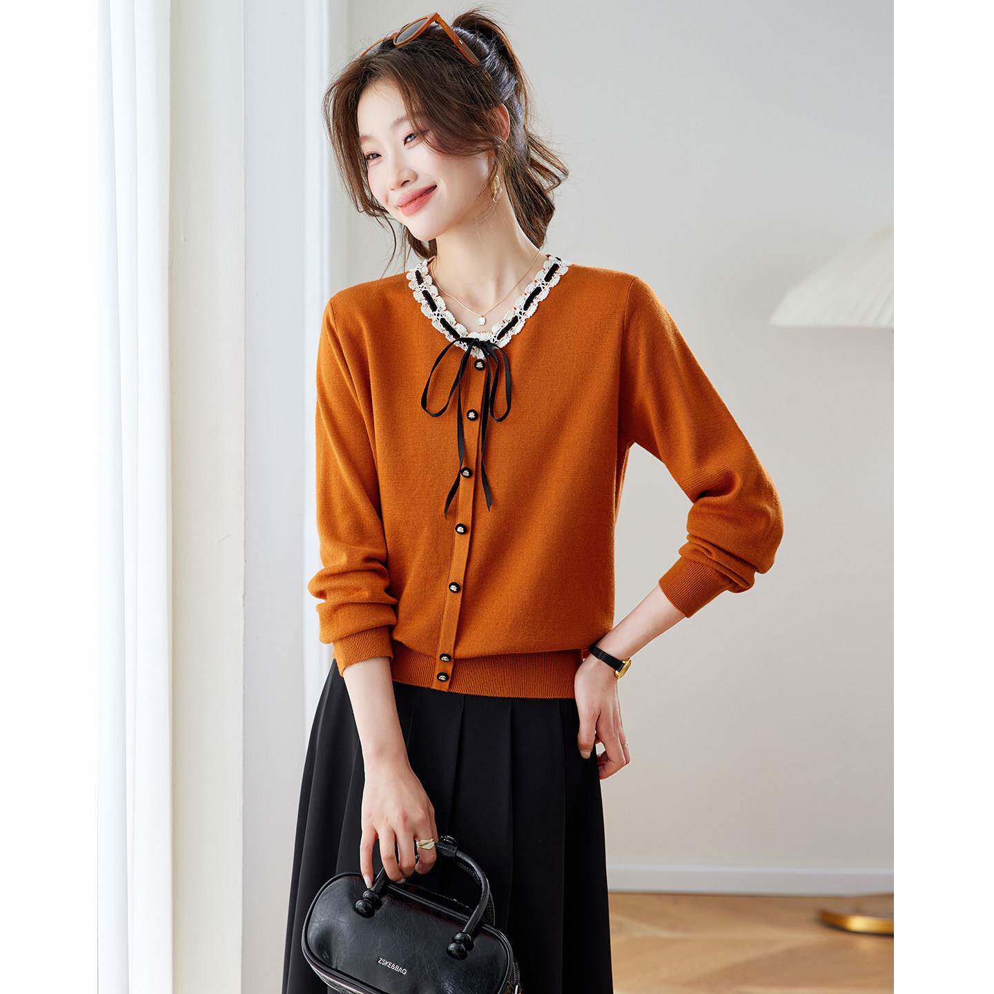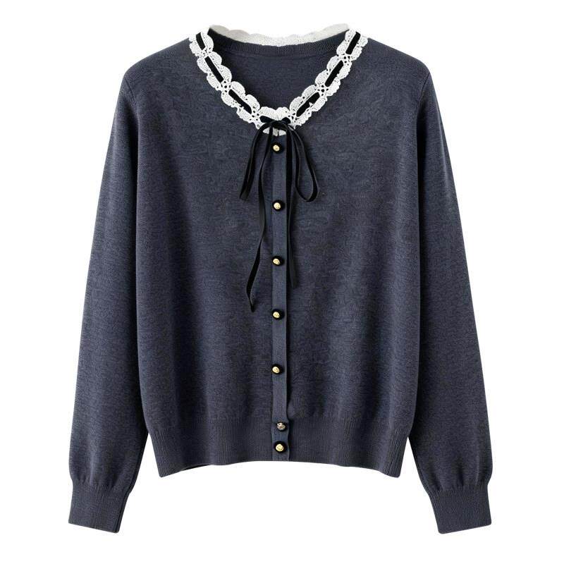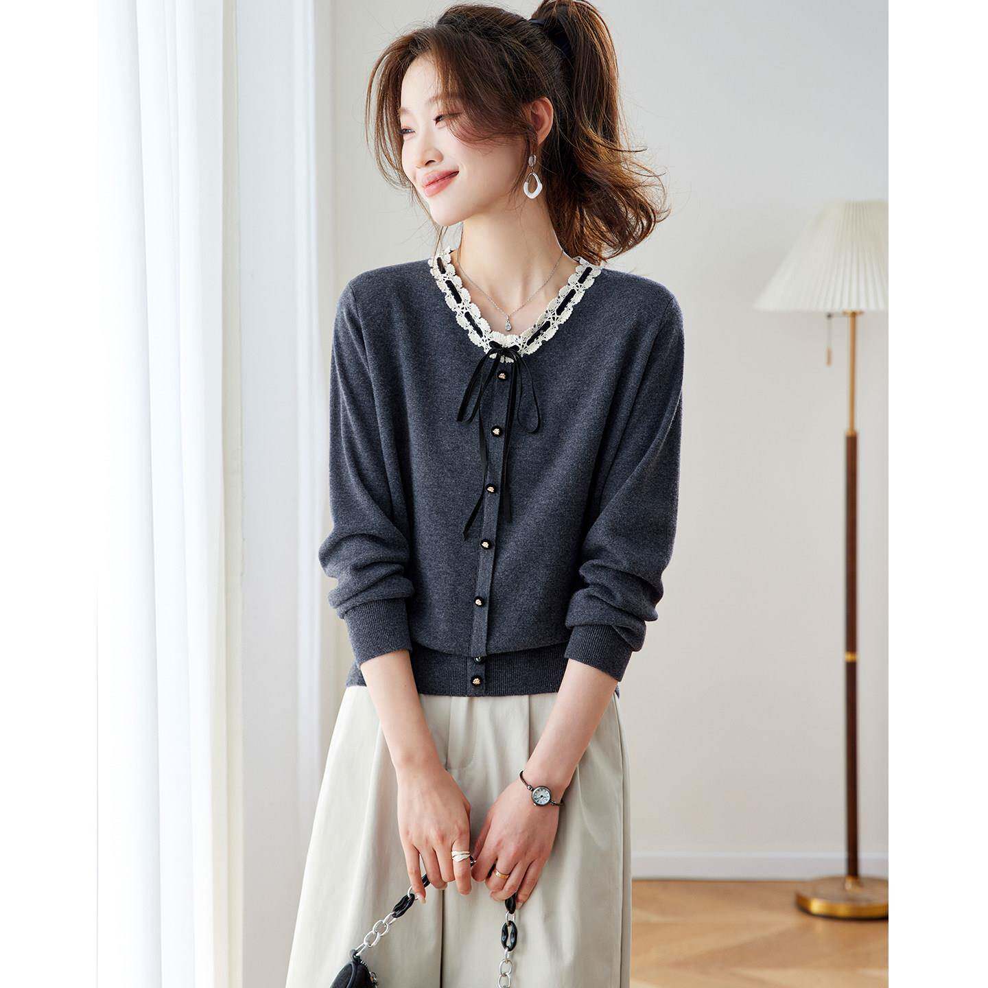 蝴蝶结针织衫女款2026新款宽松小个子毛衣百搭洋气薄款打底衫上衣