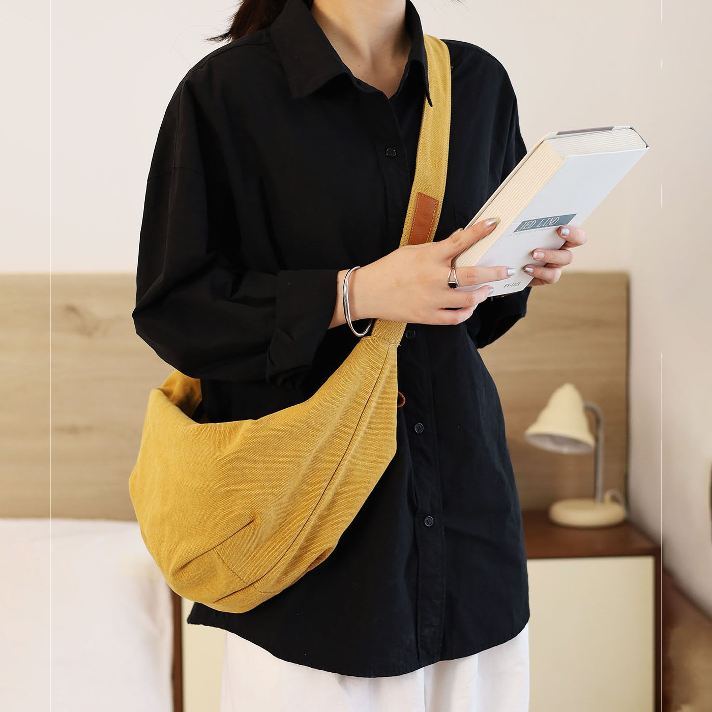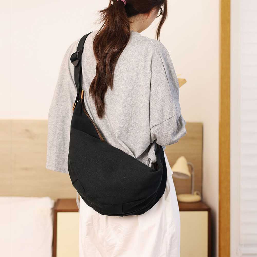 仟佰格 原创饺子包女斜挎包轻便大容量百搭文艺日系慵懒风帆布包