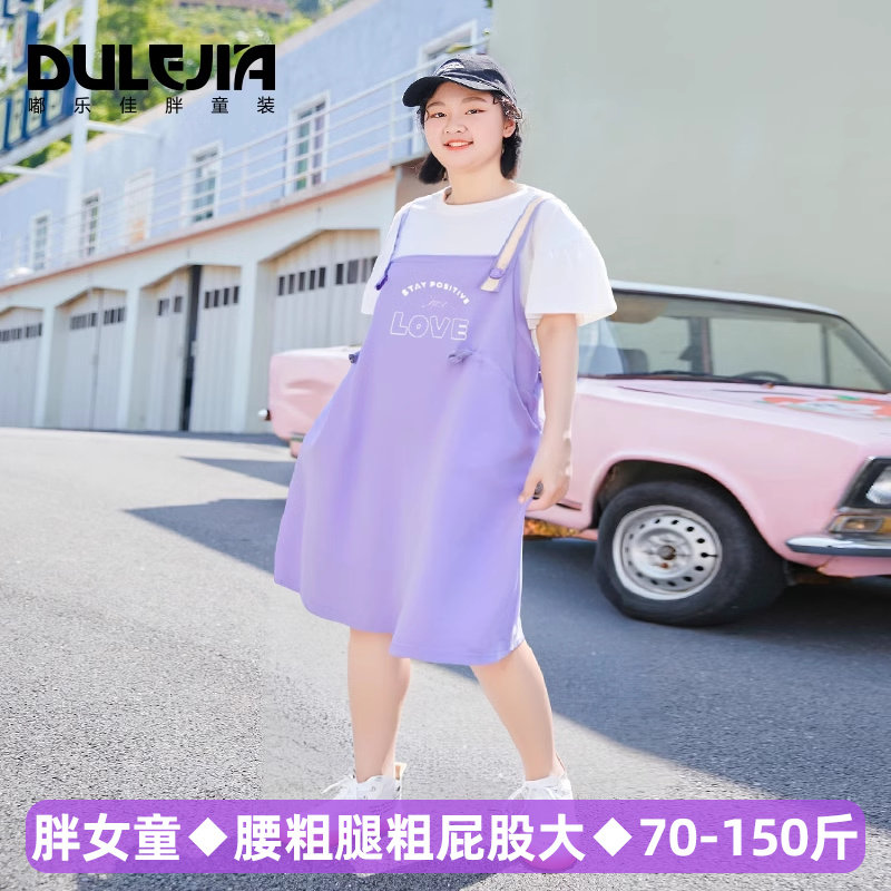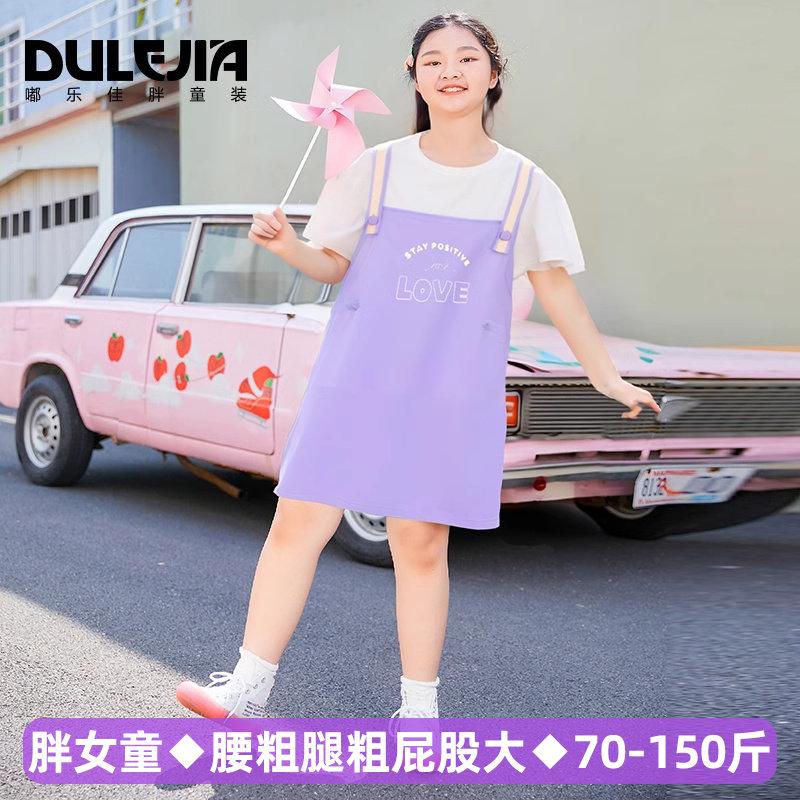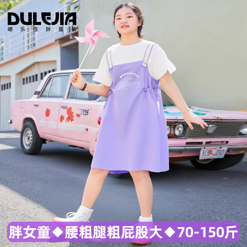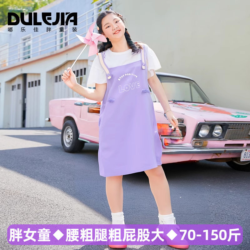 胖女童连衣裙真两件套装加肥加大码大童装春夏新款女孩显瘦长裙子