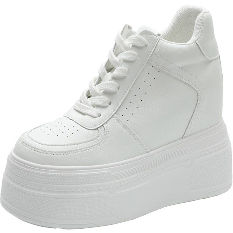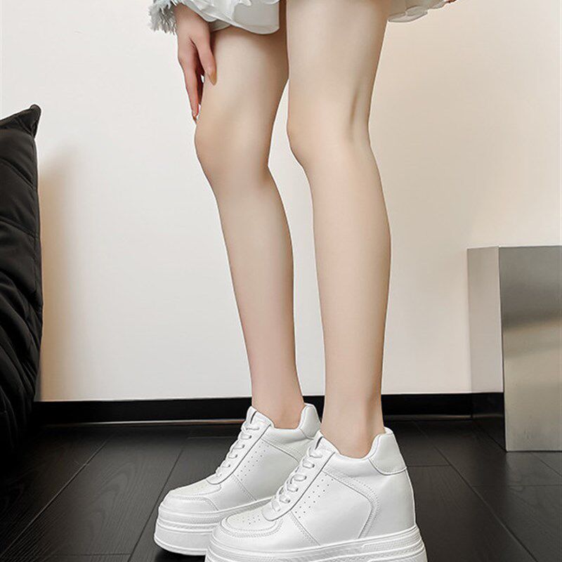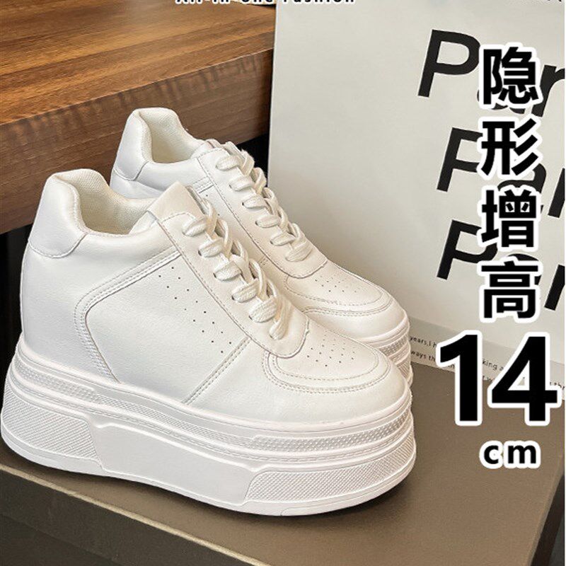 新品14公分内增高小白鞋女真皮春夏透气小个子女鞋R12CM白色厚底