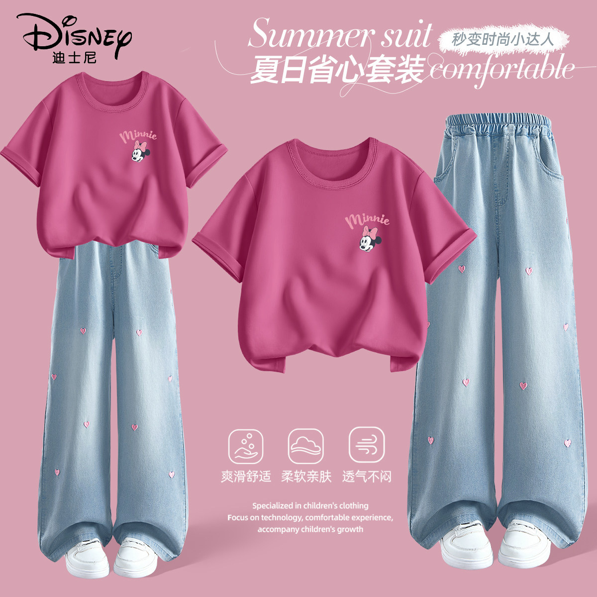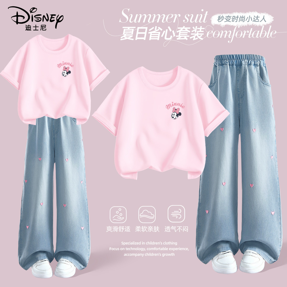 迪士尼女童夏装套装2026新款夏季薄款纯棉短袖洋气时髦儿童裤子女