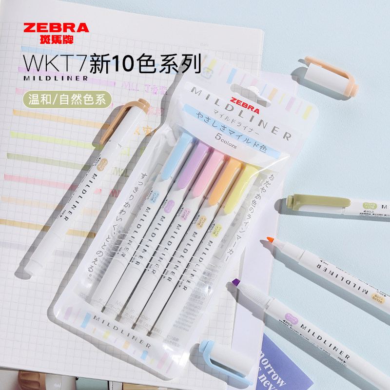 日本ZEBRA斑马荧光笔柯南限定新色盐系WKT7温和色自然色双头荧光色笔学生用重点标记号笔彩色划重点手帐新款